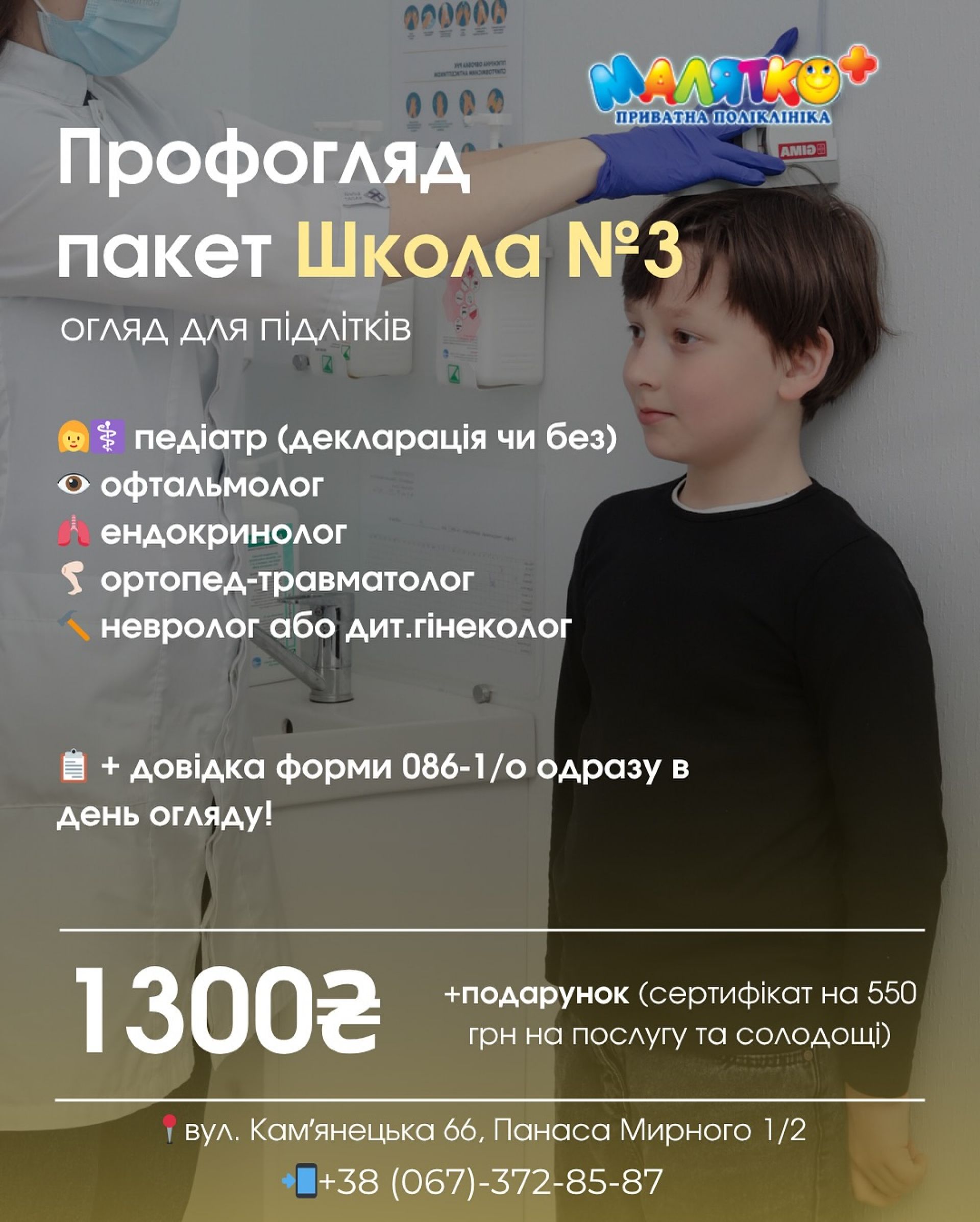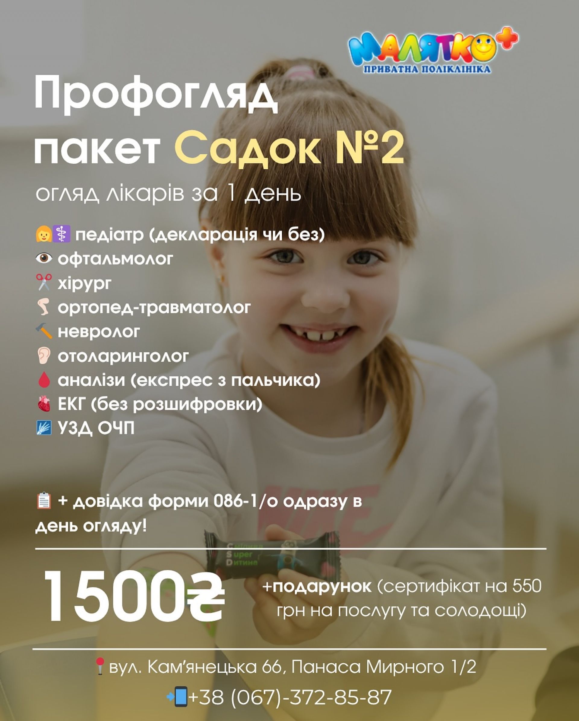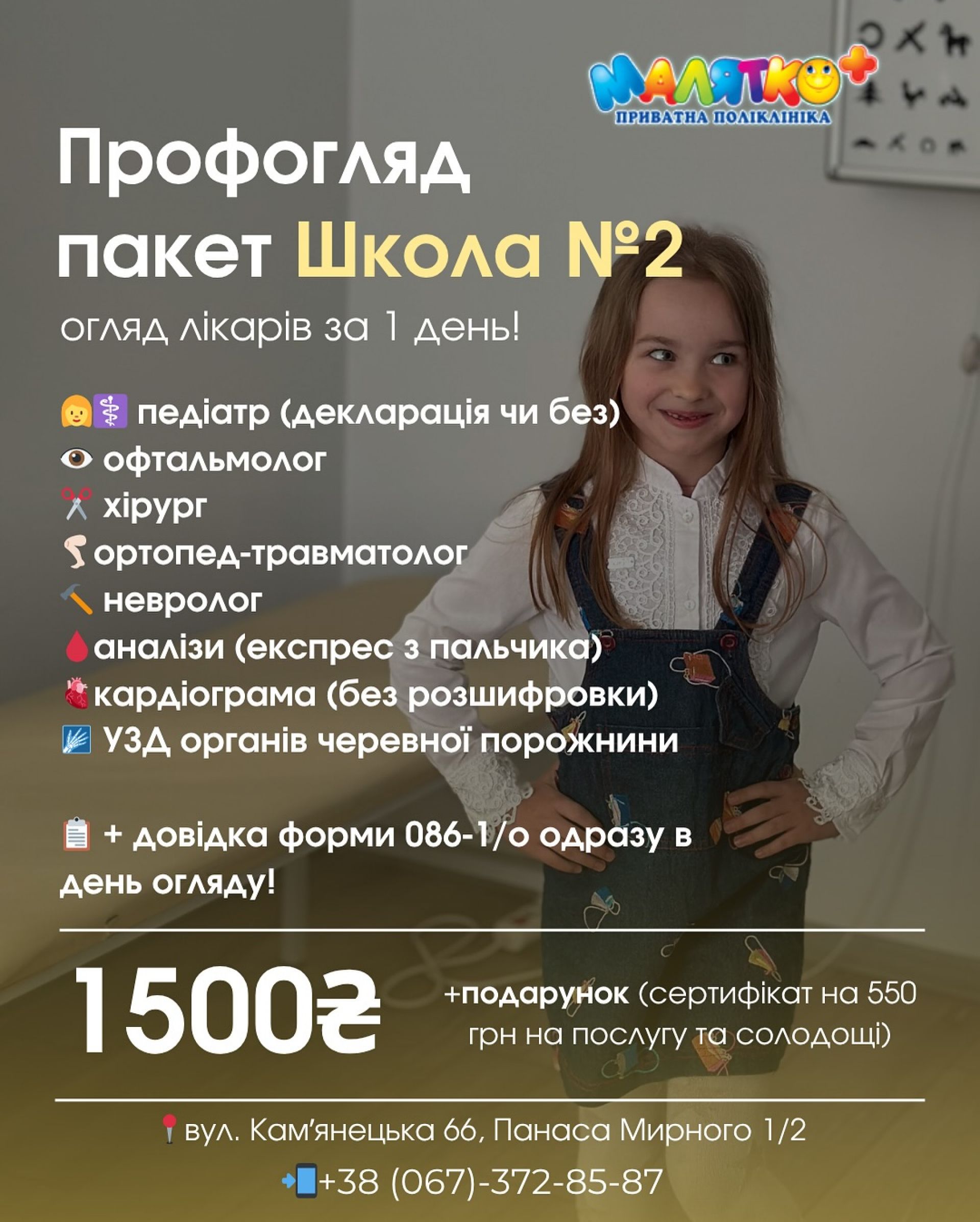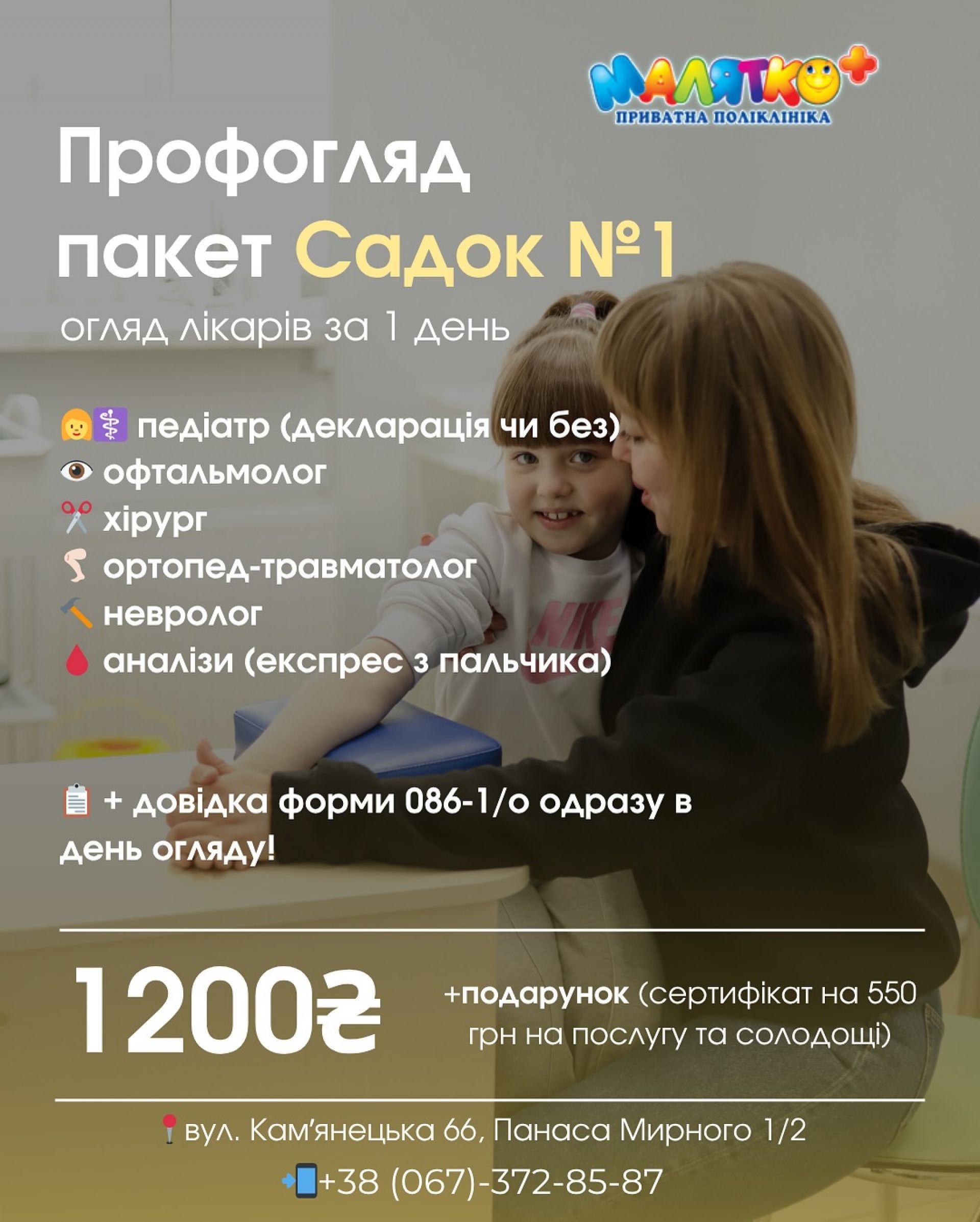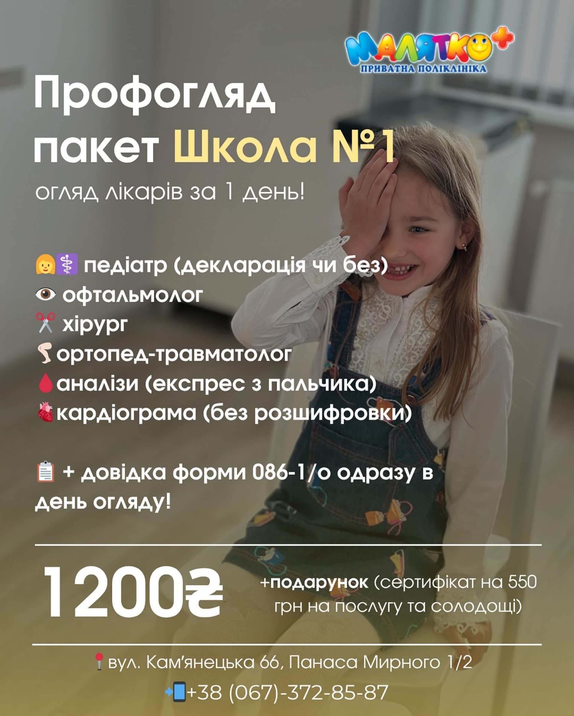 Дорогі батьки, якщо вашій дитині потрібно пройти медогляд до садочку чи школи - це можна зробити швидко та просто. Медогляд в Приватній поліклініці "Малятко Плюс" - ваше рішення.