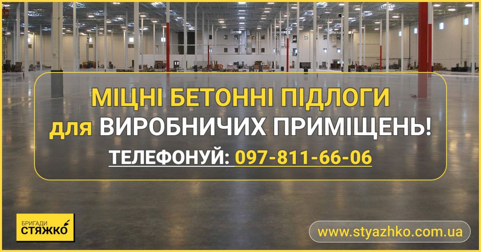 Компанія Бригади Стяжко є будівельною компанією, приорітетним напрямком якої є влаштування суперміцних промислових бетонних підлог. Ми створюємо підлоги, які відповідають всім вимогам до підлогових покриттів в умовах промислових навантажень. Створена нами сучасна промислова підлога стане надійною опорою для вашого бізнесу.