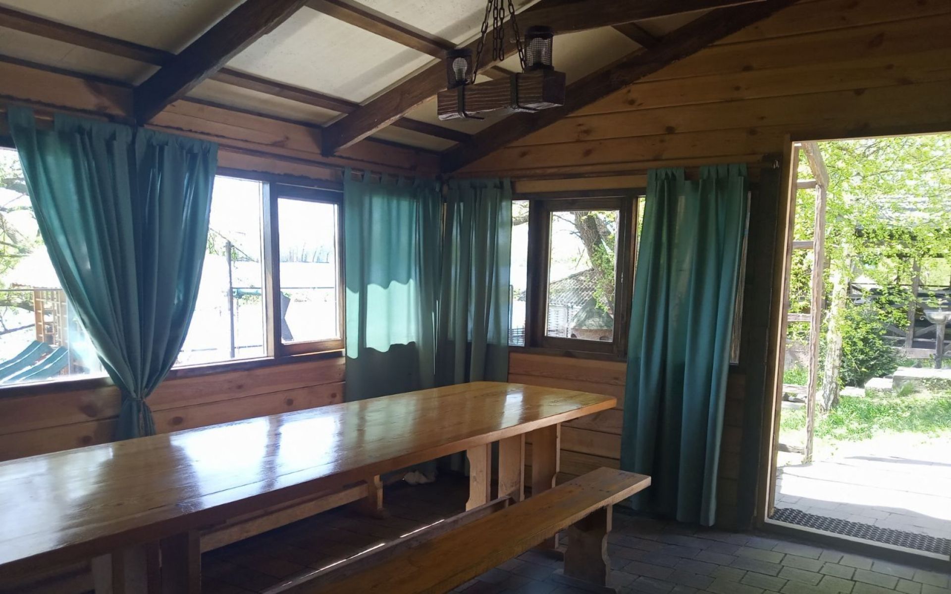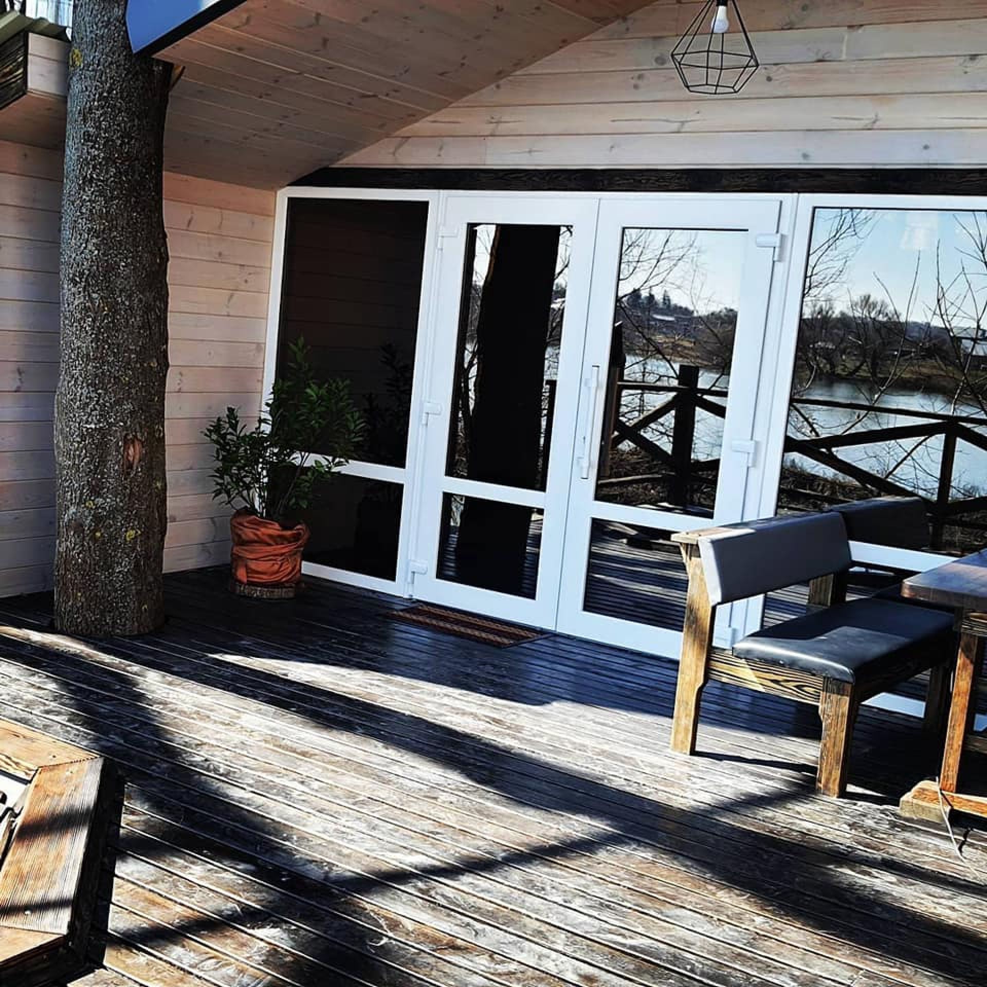 Чан розрахований на компанії до 8 чоловік. Він розташований на терасі біля деревʼяного будиночку з сучасним інтер'єром. В будиночку є стіл на 8-10 чол., за яким гості зможуть посидіти під тріскіт дров у каміні. Поряд є річка (взимку ополонка) куди можна зануритись після гарячого чану і отримати неперевершені відчуття!