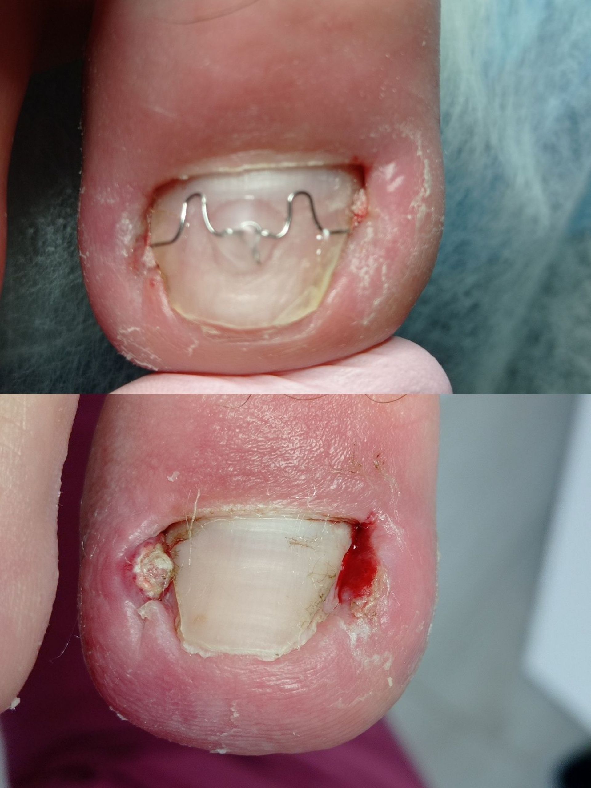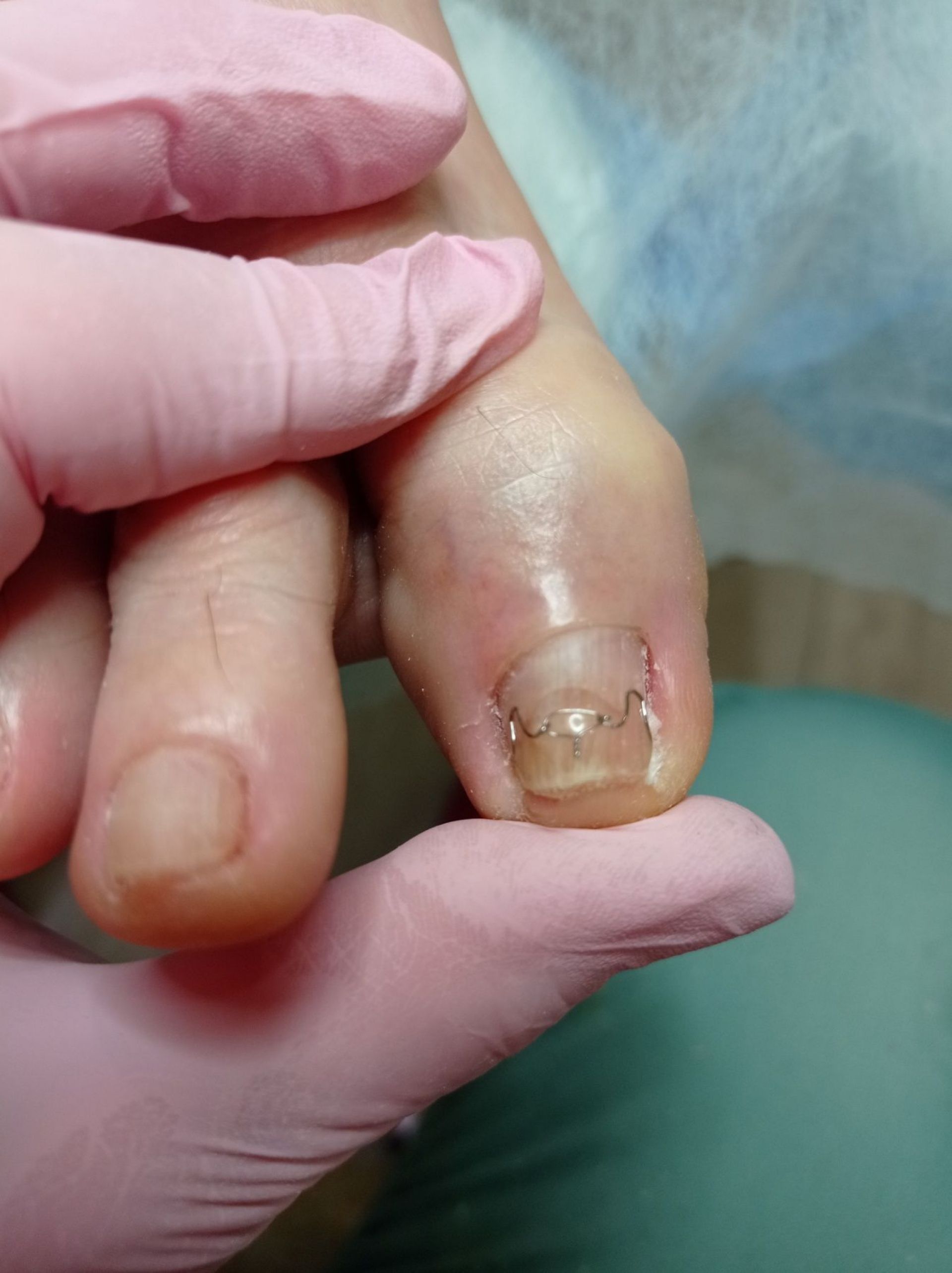 - Корекція нігтів, що вросли: Використання скоб для корекції та подальше ведення до повного одужання.