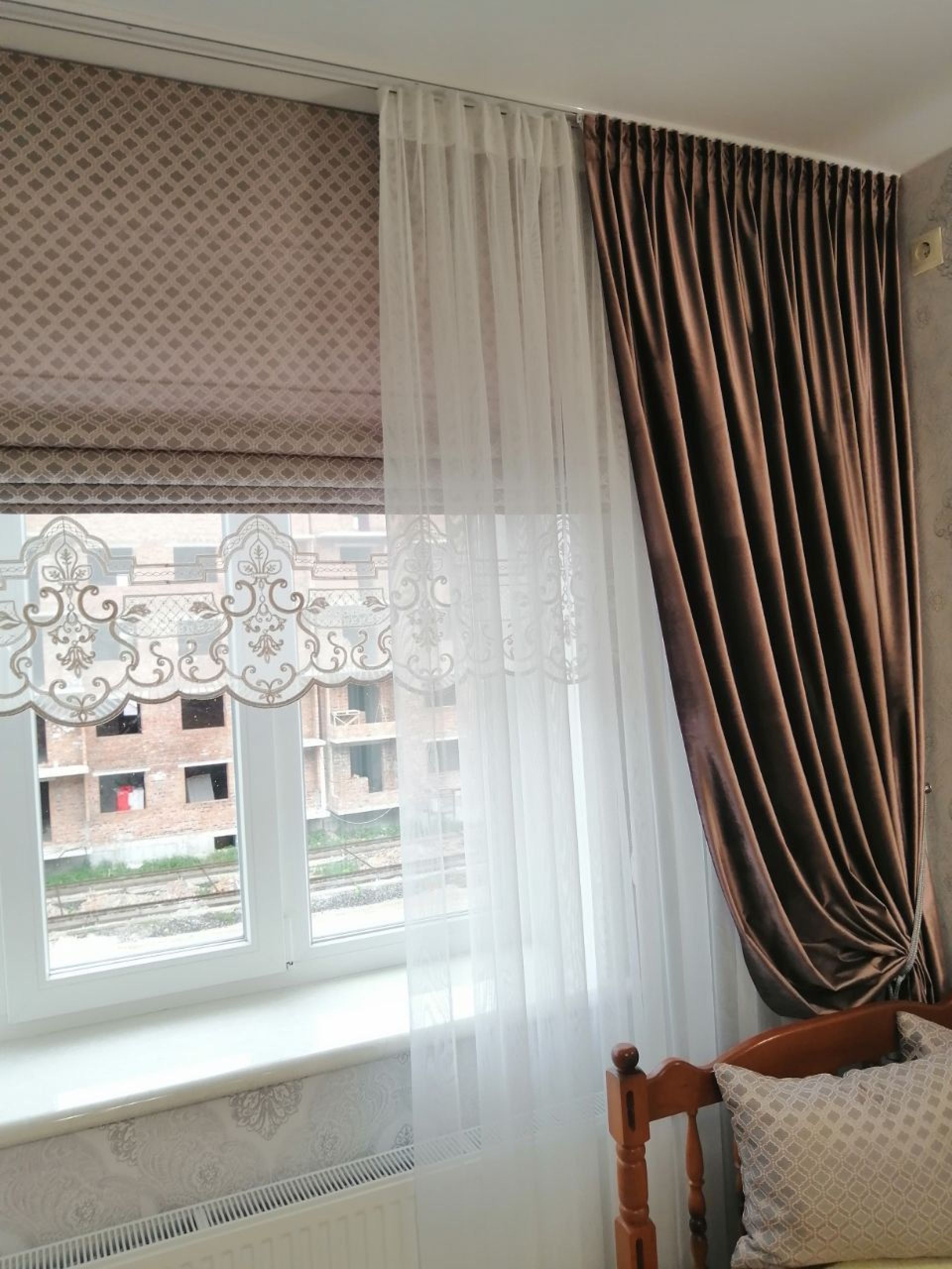 - Створення ескізу майбутнього виробу, консультація і підбір матеріалів тюля та штор, із більше чим 2000 взірців тканин.