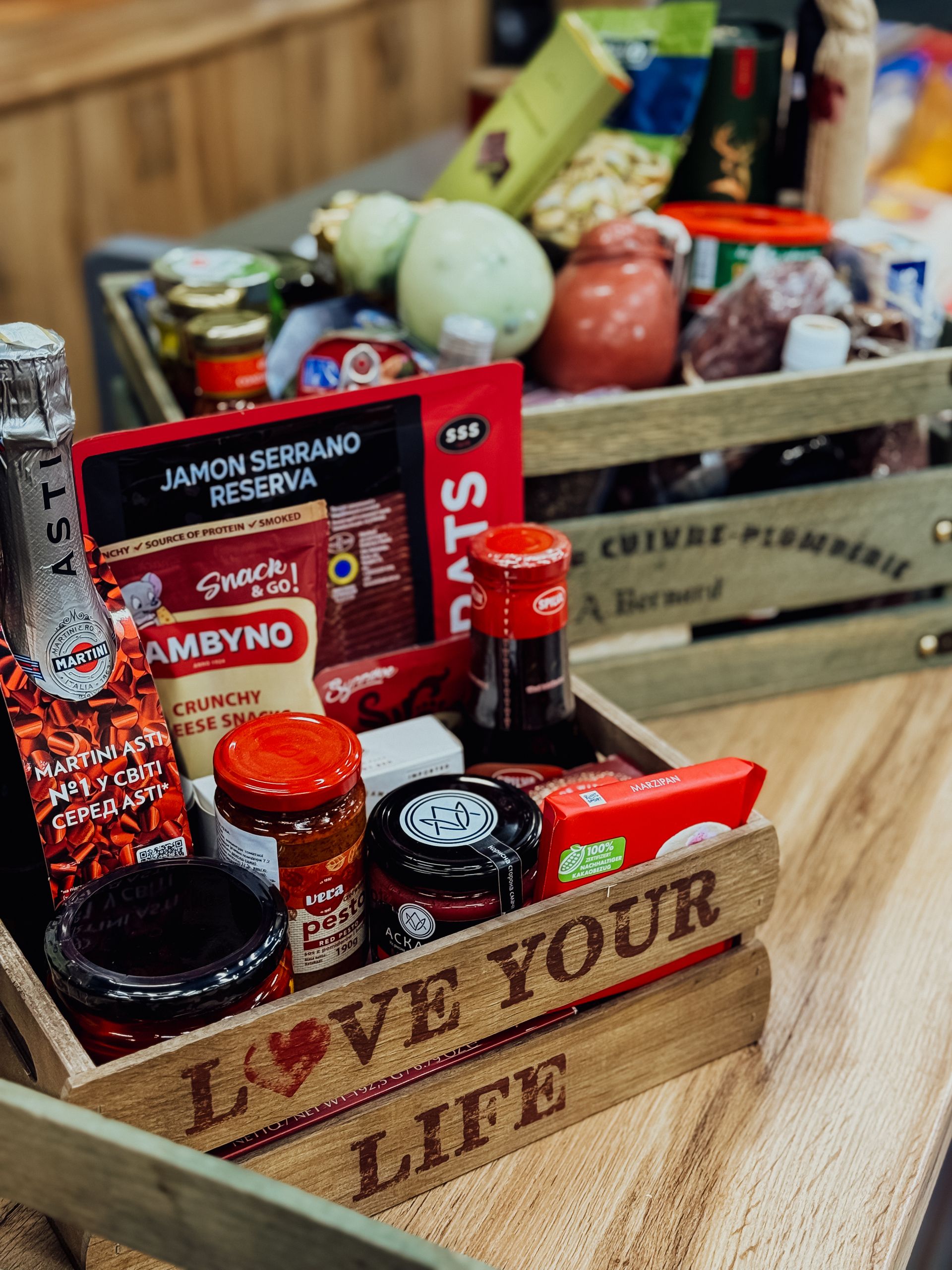 - Ковбаси та м’ясні делікатеси: Хамон, прошуто, салямі, італійська мортадела.