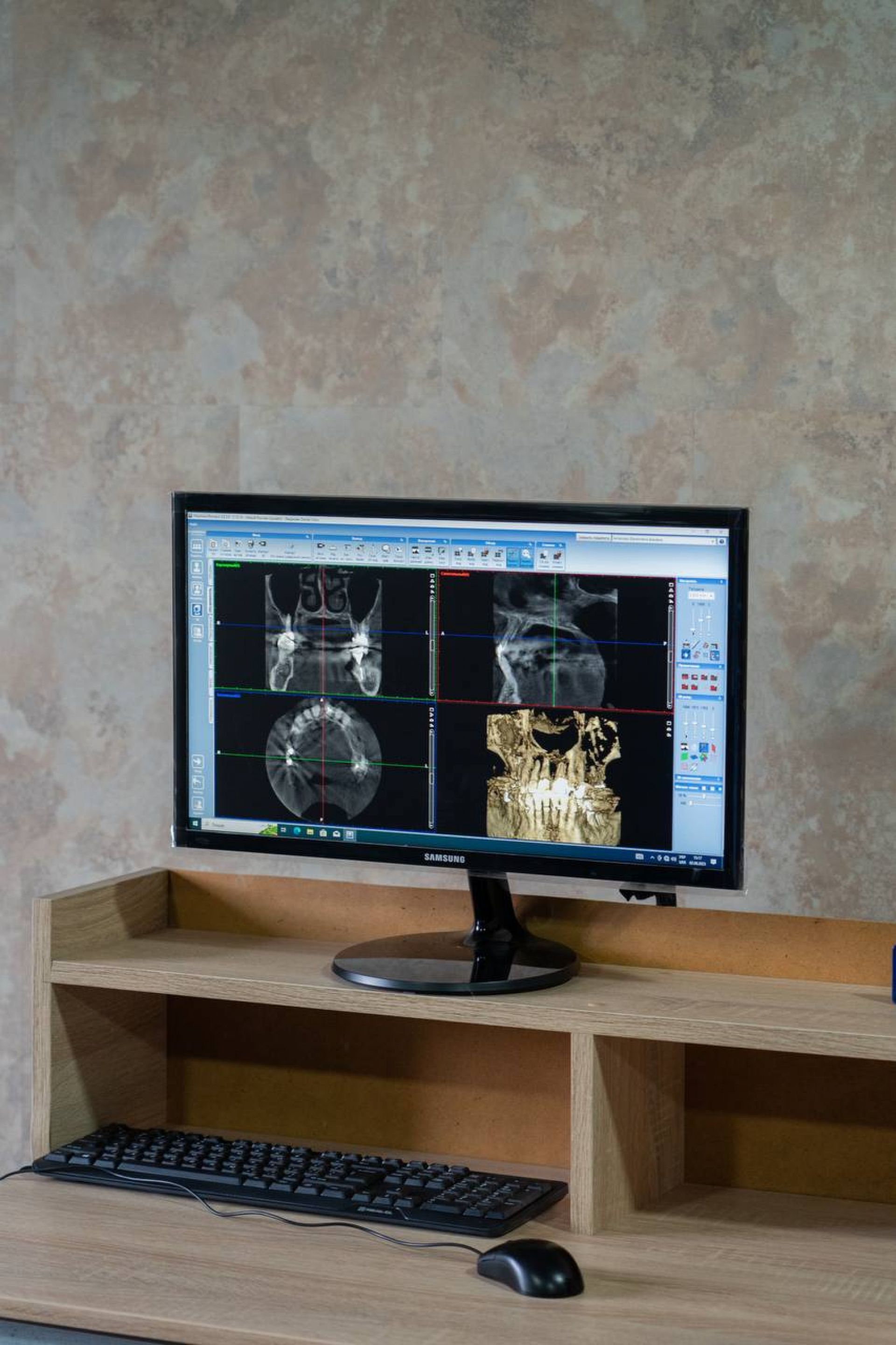- Комп’ютерна томографія (КТ) – дає можливість отримати тривимірні зображення зубів і щелеп для детального аналізу стану пацієнта.