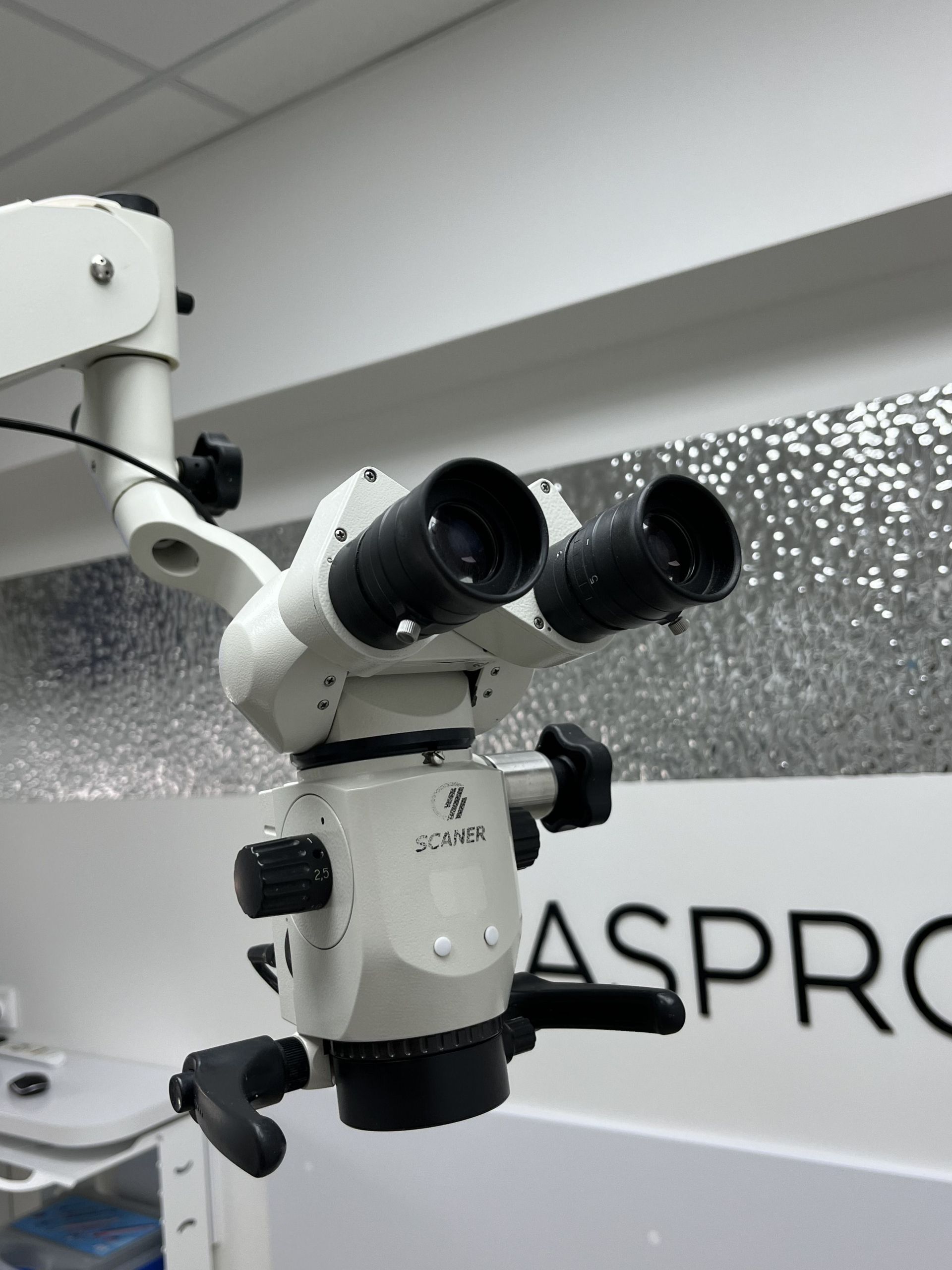 Клініка також використовує мікроскоп для лікування, що дозволяє стоматологам виявляти мікроскопічні проблеми на ранніх стадіях, такі як карієс або злами емалі, а також оцінювати якість пломб і точно лікувати кореневі канали. Завдяки мікроскопу можна не лише побачити всю довжину кореневого каналу для якісного лікування, але й видалити зламані інструменти з каналів, що є важливим для збереження зуба. Ця технологія значно підвищує точність і ефективність лікування, допомагаючи вирішити складні стоматологічні проблеми.