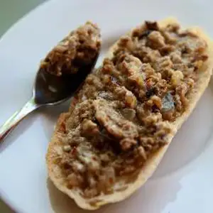 Гриби (500 грам) дрібненько порізати. На сковороді розігріти вершкове масло, видавити у нього шість зубчиків часнику, додати подрібнену цибулину і обсмажити її до готовності. Додати до цибулі гриби, посолити, поперчити за смаком, можна додати кмин. Смажити до повного випаровування соку.