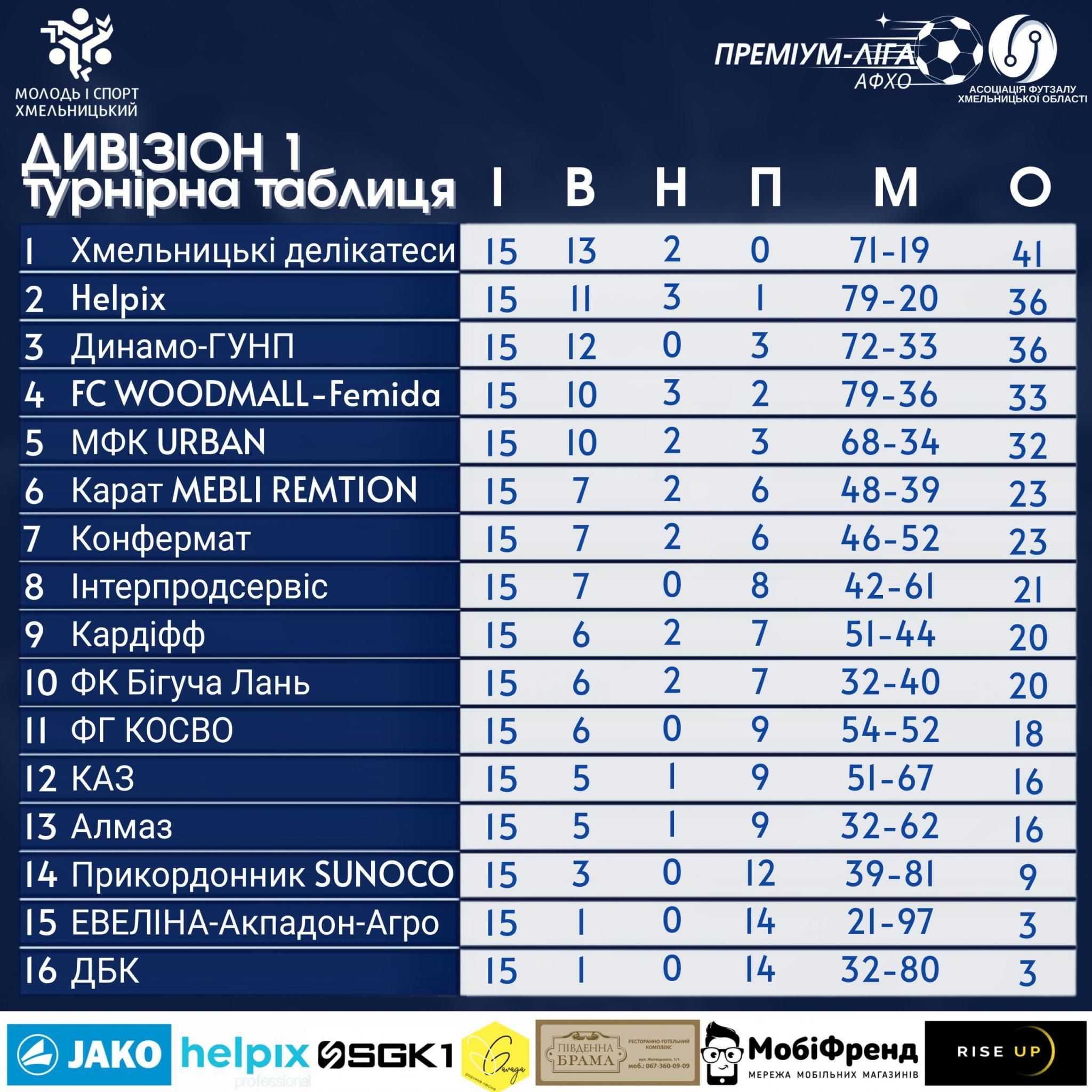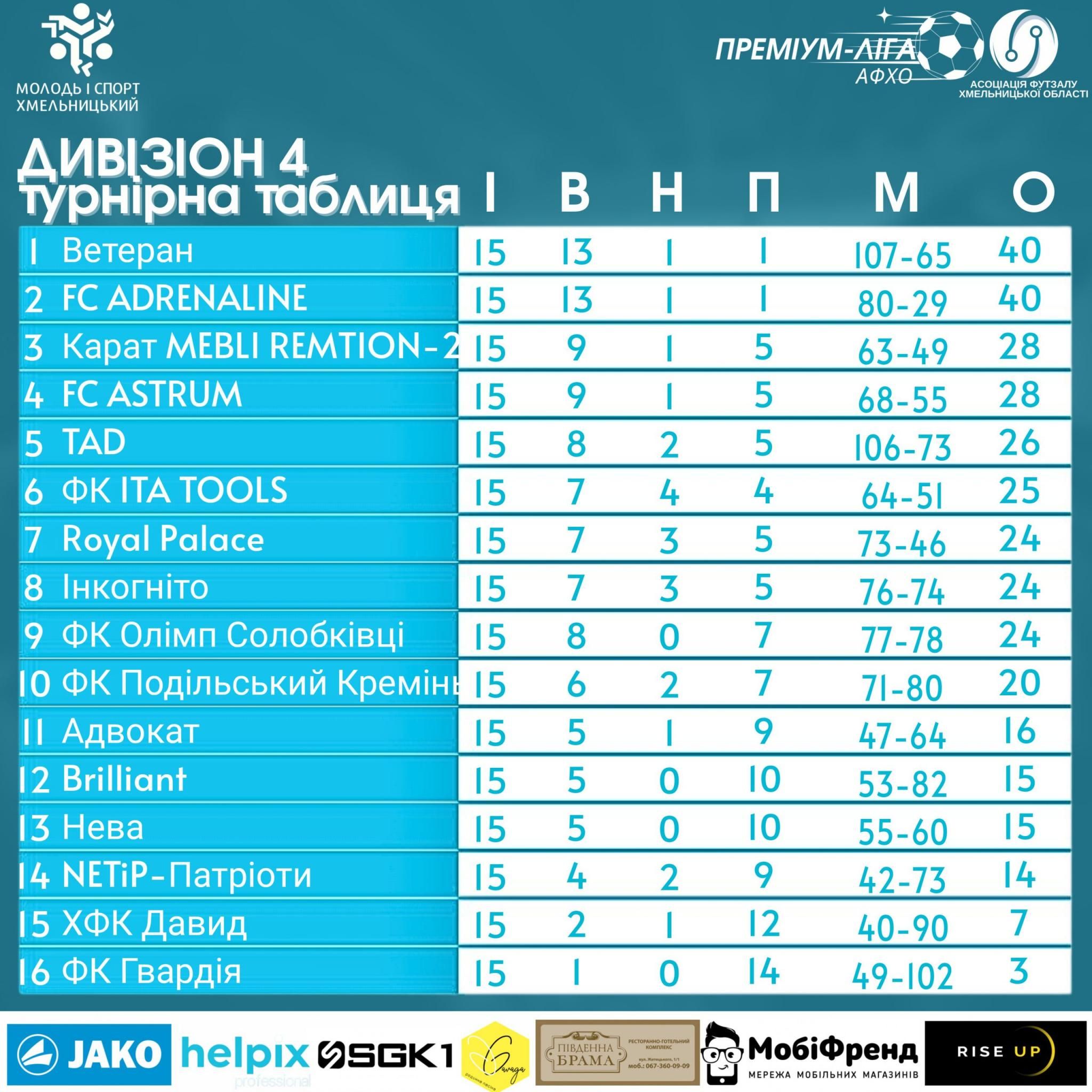 У футзальній Пруміум-лізі завершився регулярний чемпіонат в чотирьох дивізіонах. За його підсумками в кожному з них визначилися по 8 команд, які продовжать боротьбу за медалі у плей-офф. Команди у серіях до двох перемог визначатимуть кращих, починаючи із 1/4 фіналу.
