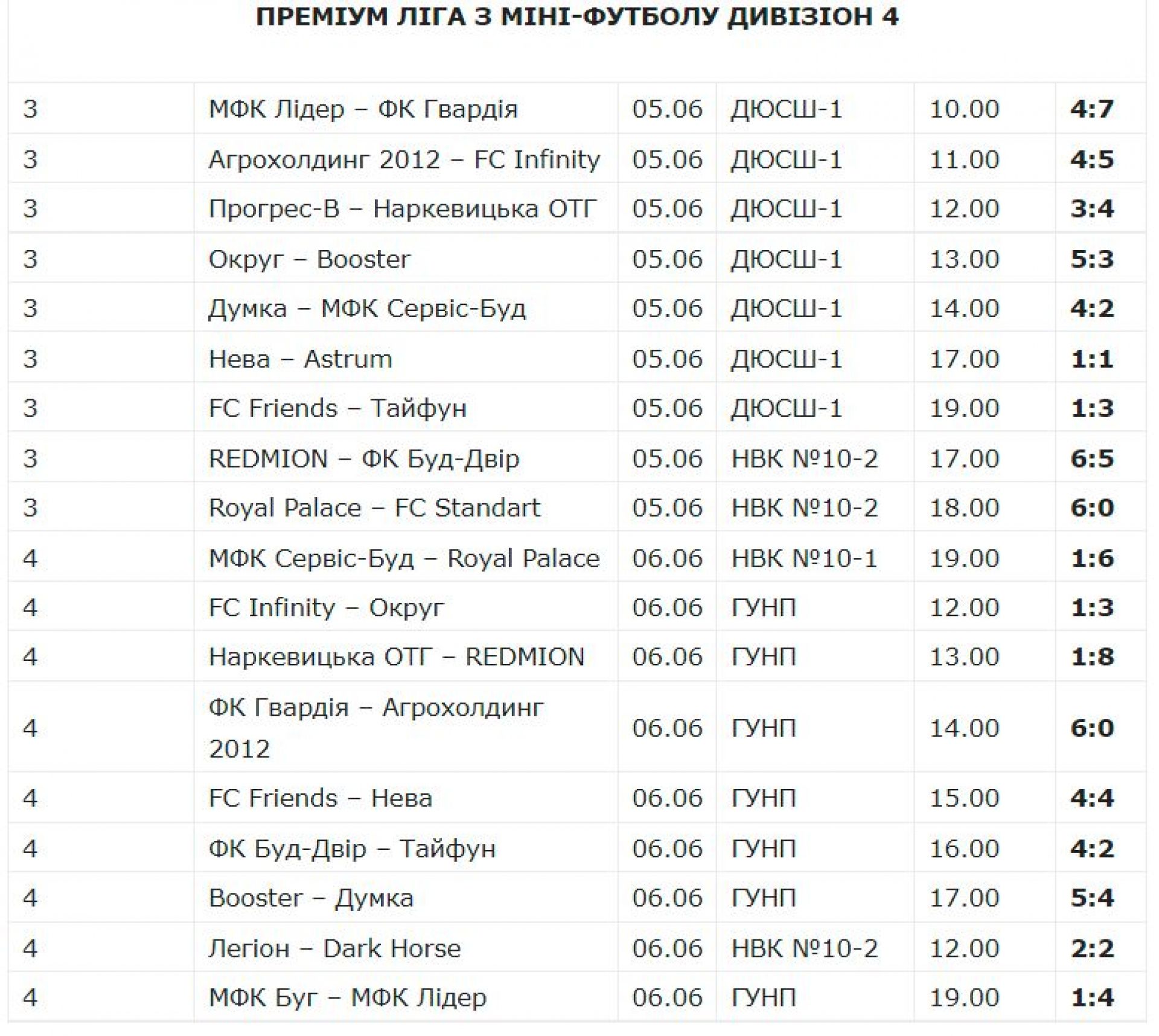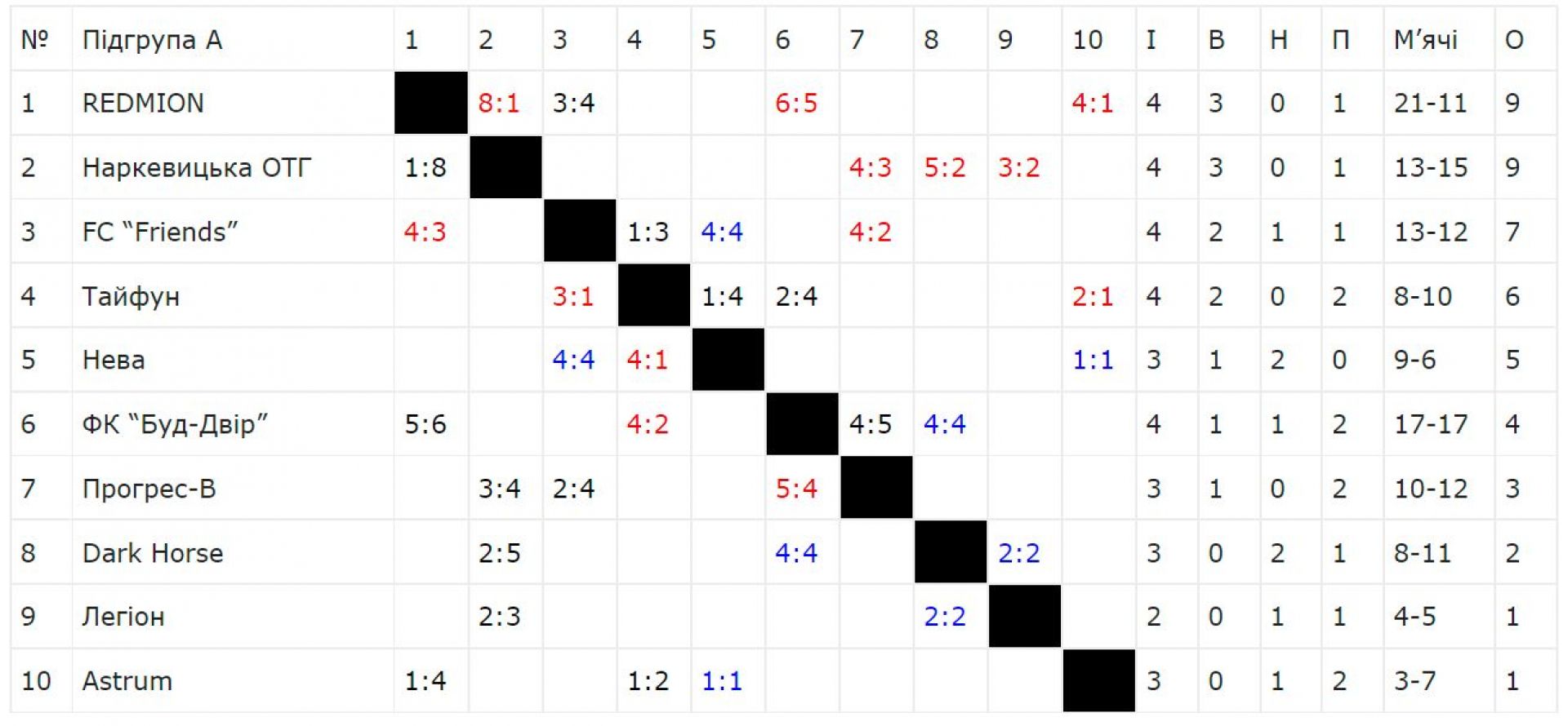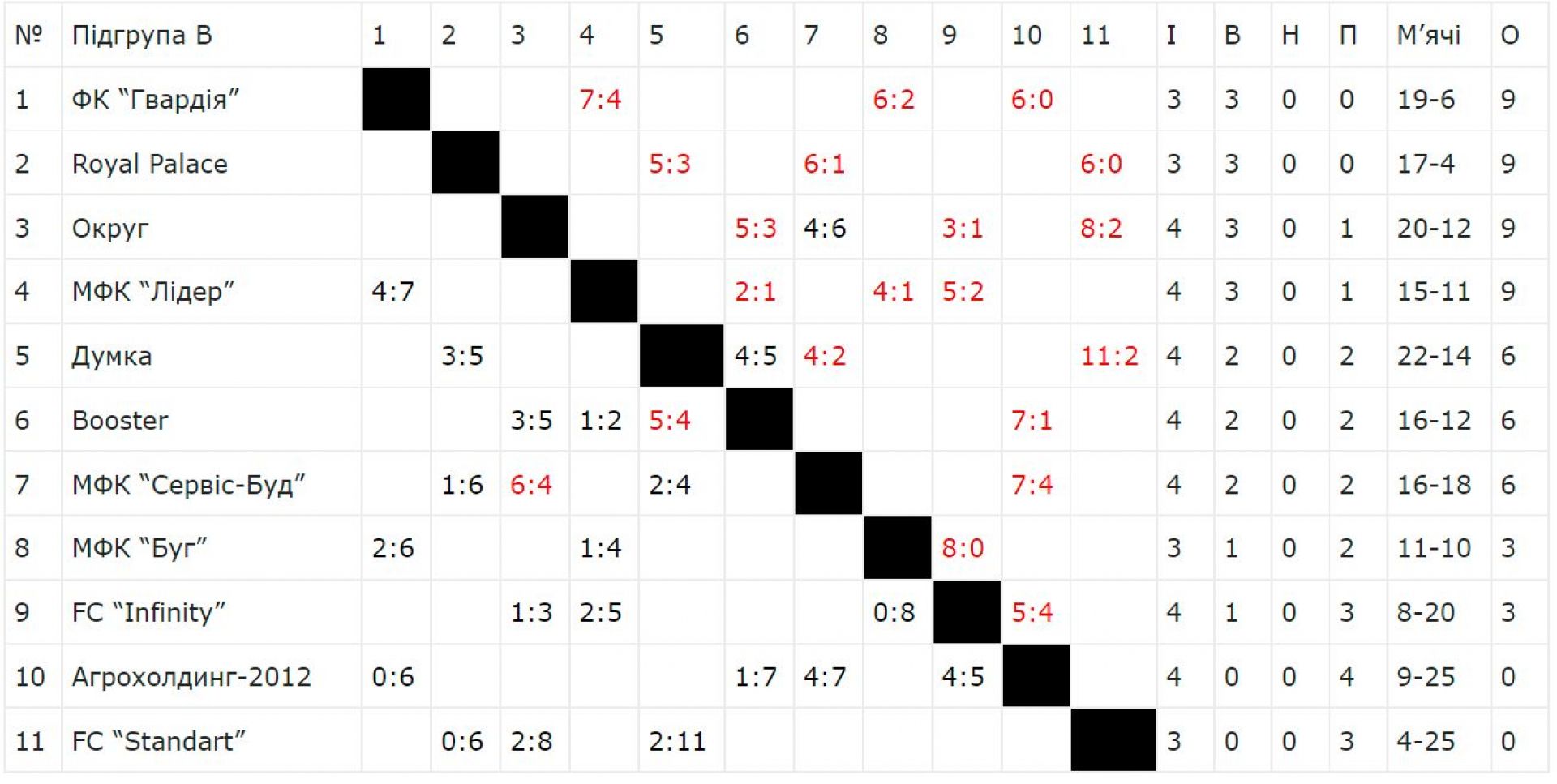 Гортайте галерею й дивіться результати матчів та турнірні таблиці.