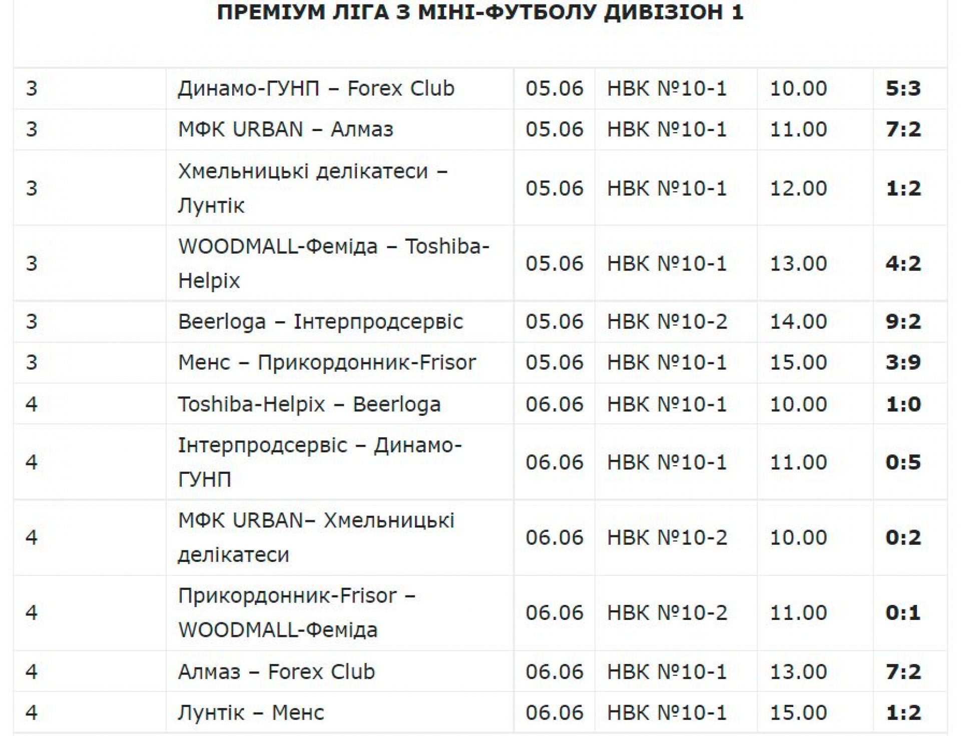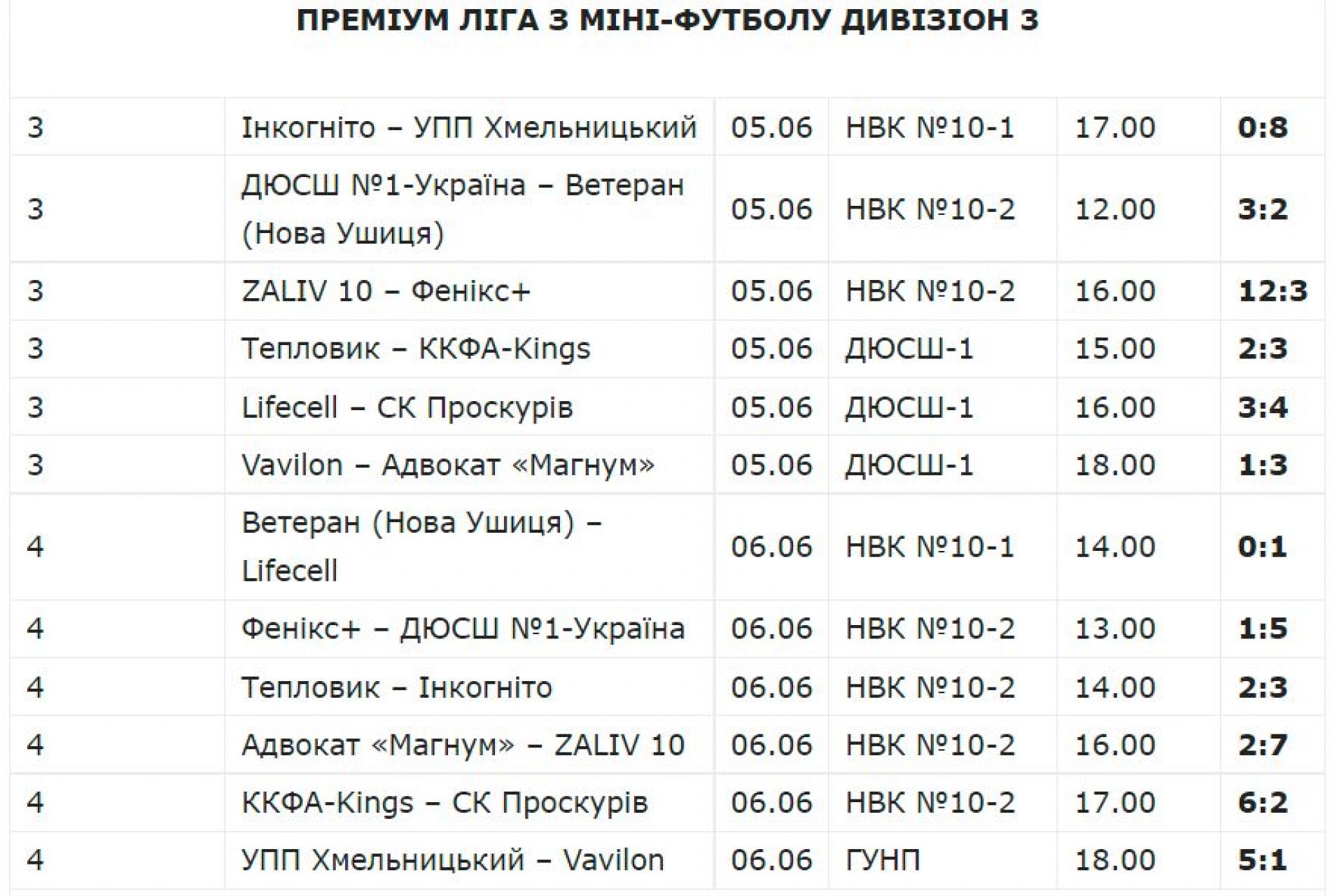 Впродовж вихідних на міні-футбольних майданчиках міста було зіграно 54 матчі. Вони відбулися в рамках 3 та 4 турів чемпіонату Хмельницького.