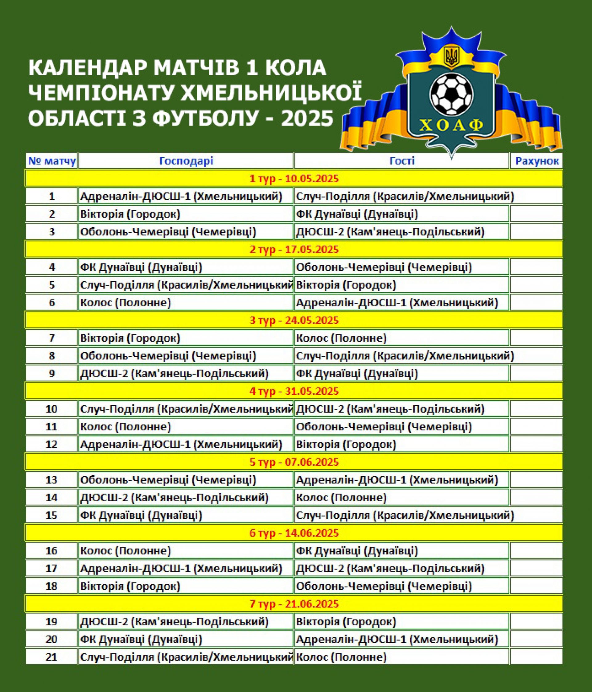 Чемпіонат Хмельницької області з футболу 2025 (календар матчів)