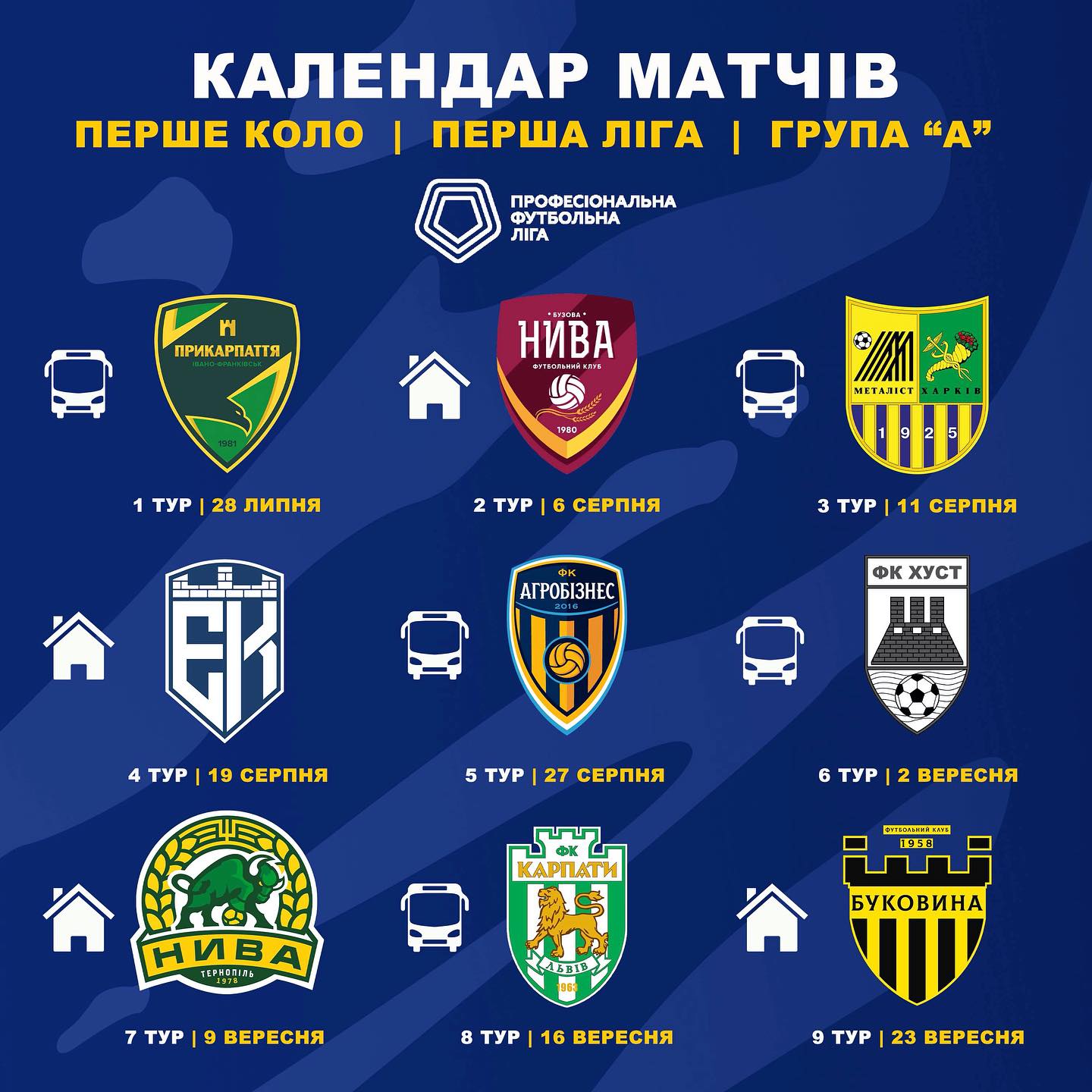 Повний календар матчів: