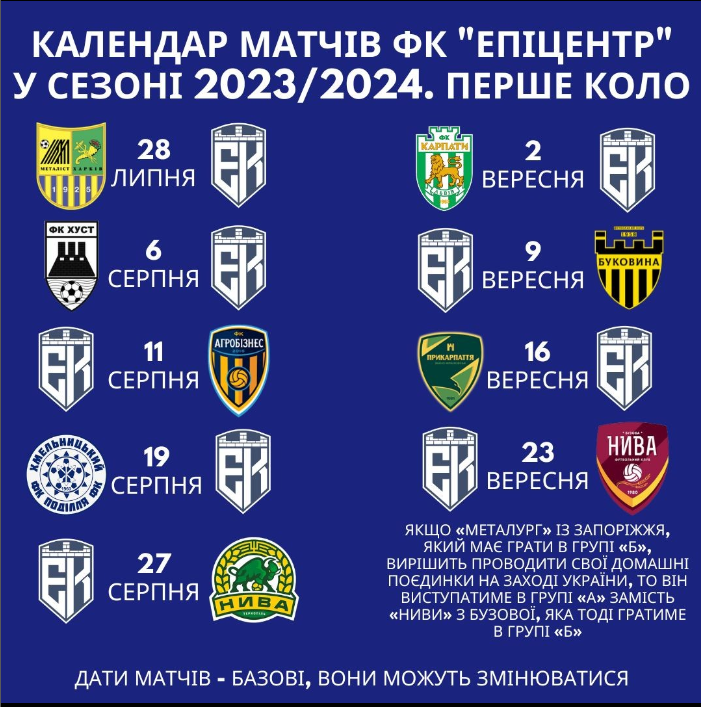 Календар матчів кожної з команд із Хмельниччини у фото: