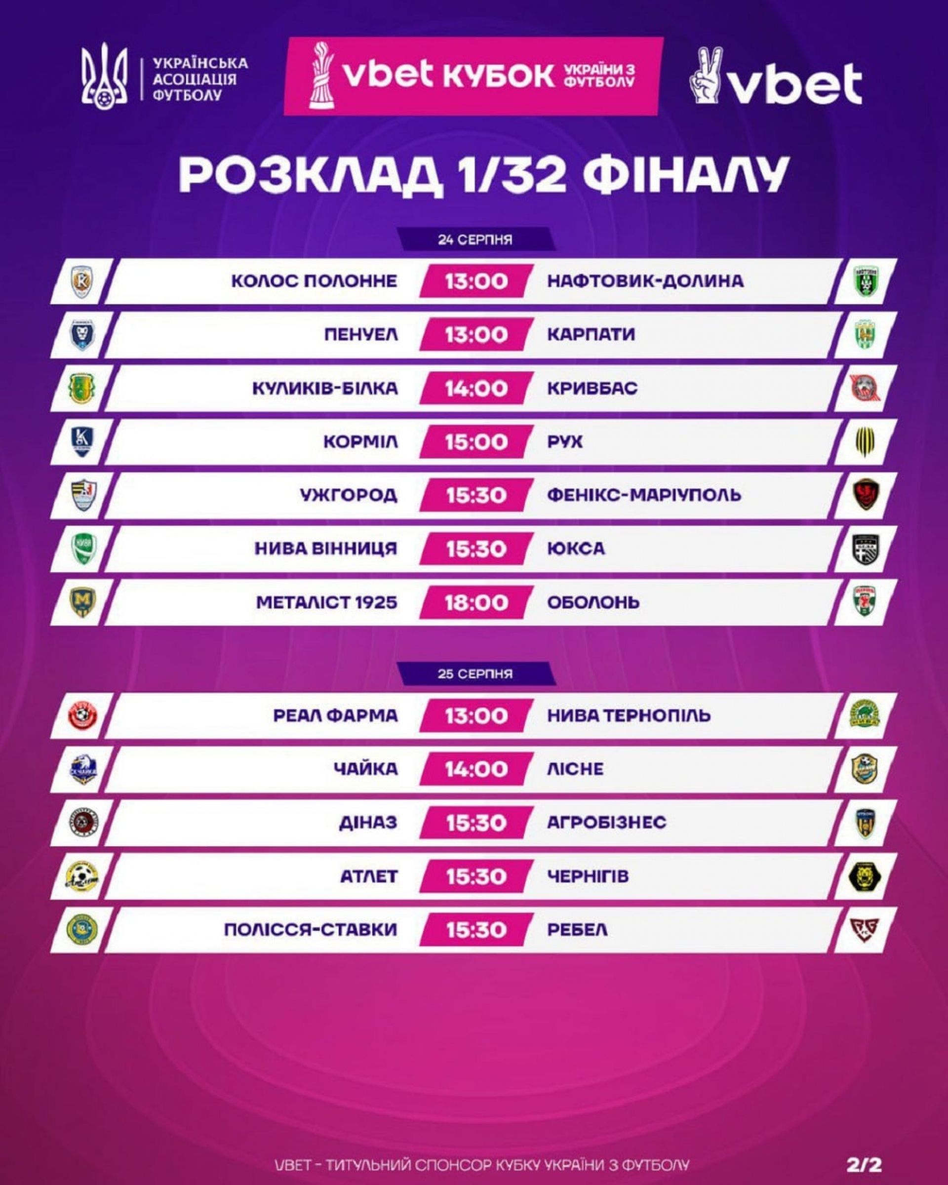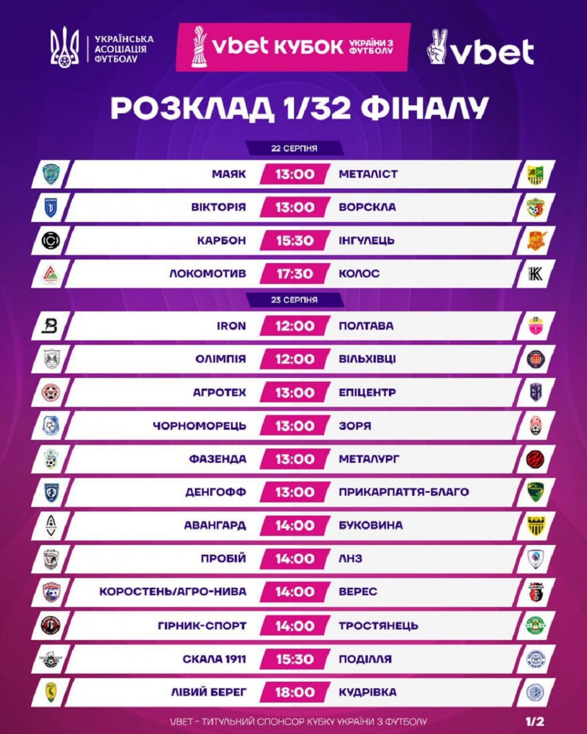 Розклад матчів: