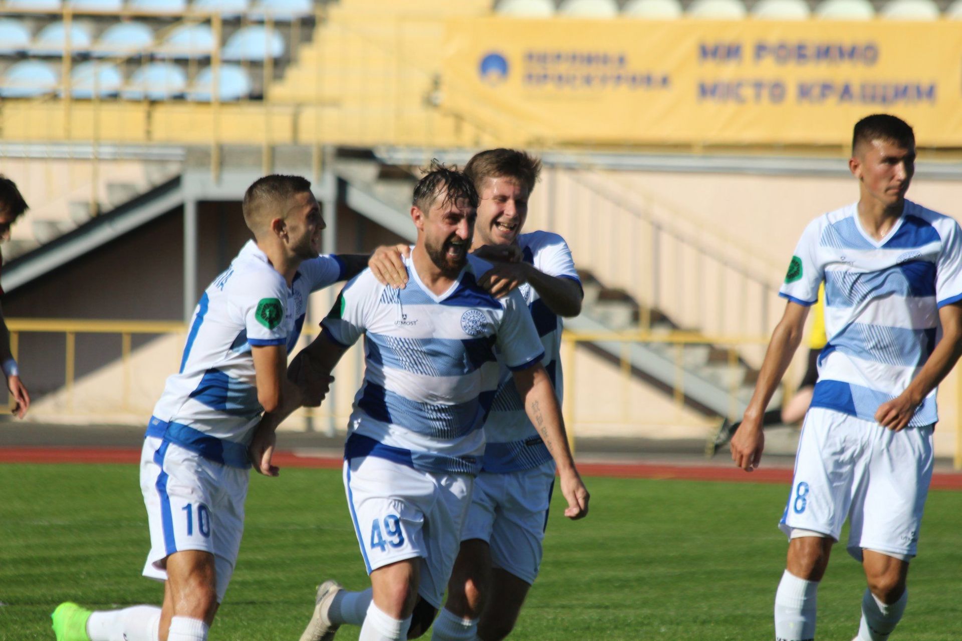 Переможний гол на рахунку Віталія Каверіна (у центрі). Фото Віктора Зарванського (ФК "Поділля").