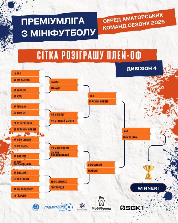 Натомість у дивізіоні 4 обидві серії розтягнулися на максимальні три матчі. КАЗ у першій грі мінімально поступився Мʼясному Маркету (3:4). У двох наступних матчах все визначалося в серіях пенальті. В обох точнішим були гравці КАЗу (3:3, 4:3 по пенальті, 3:3, 5:4 по пенальті).