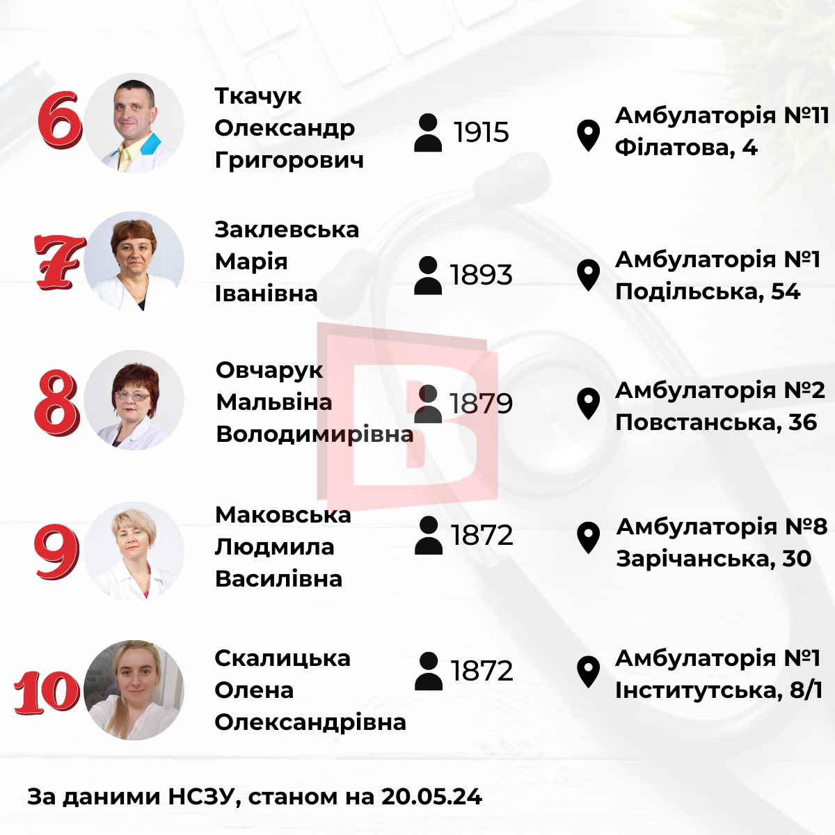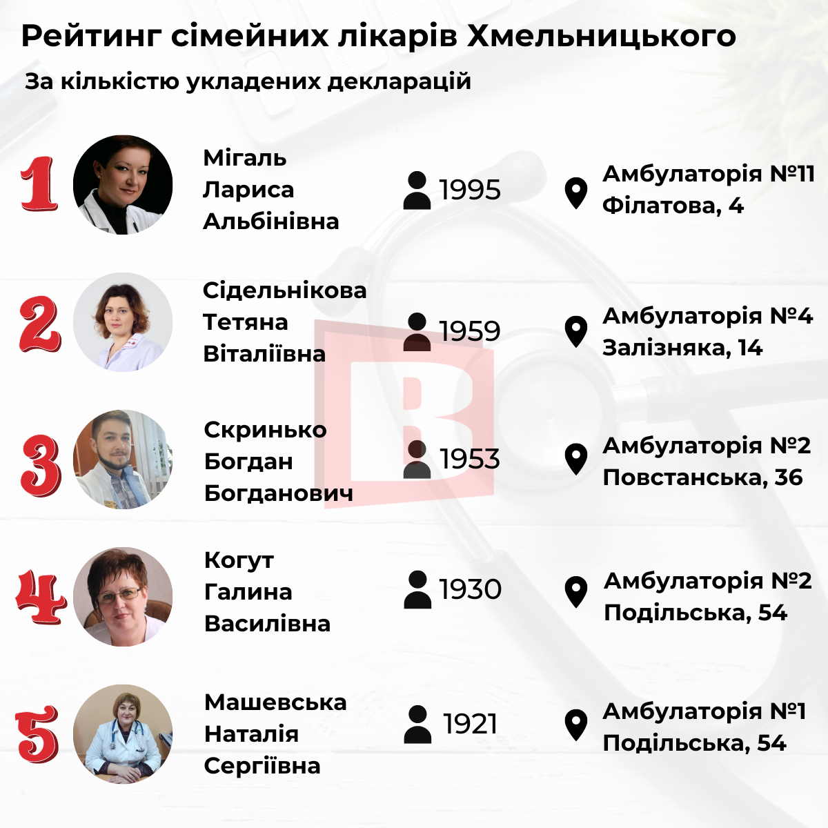 10 найпопулярніших сімейних лікарів Хмельницького: рейтинг за деклараціями