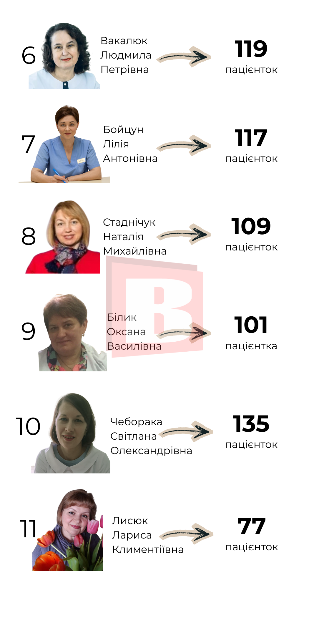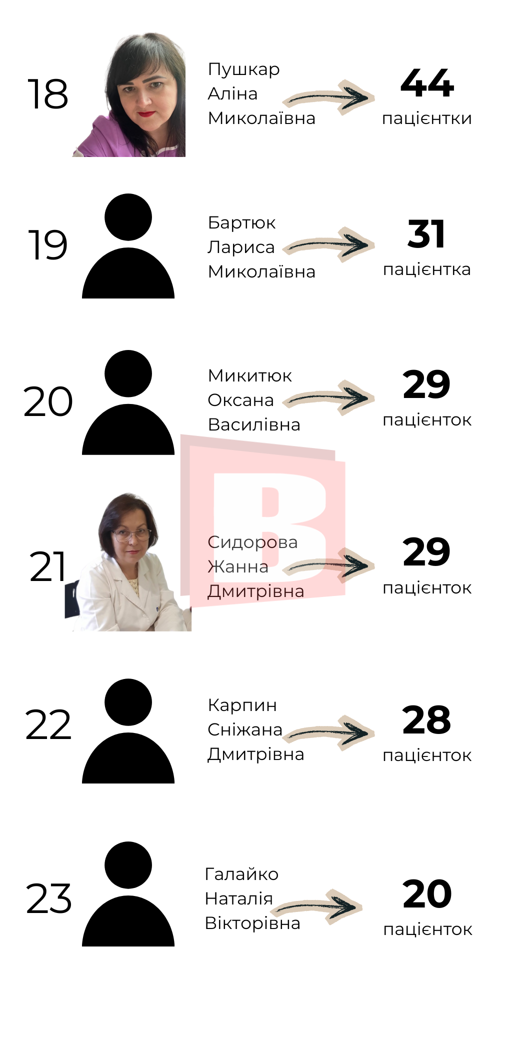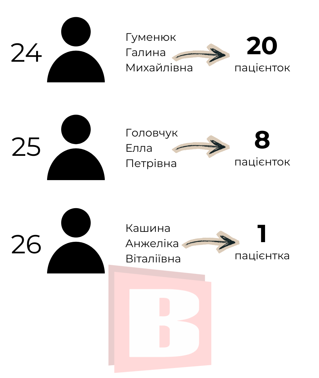 Серед лікарень у Хмельницькому, які мають заключений договір із НСЗУ за вище описаним пакетом: обласна лікарня, центральна районна лікарня, приватний медзаклад та Хмельницький міський перинатальний центр. Кого ж із акушерів-гінекологів останнього найчастіше обирають хмельничанки для ведення вагітності? Про це дізналася журналістка vsim.ua, за даними 2025-го.