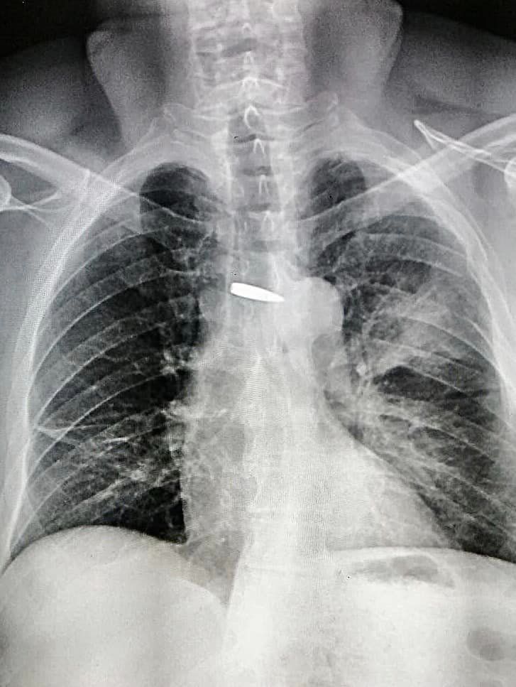 Лікарі стабілізували стан пацієнта та поставили дренажну систему в ліву плевральну порожнину. А після цього витягнули снаряд.