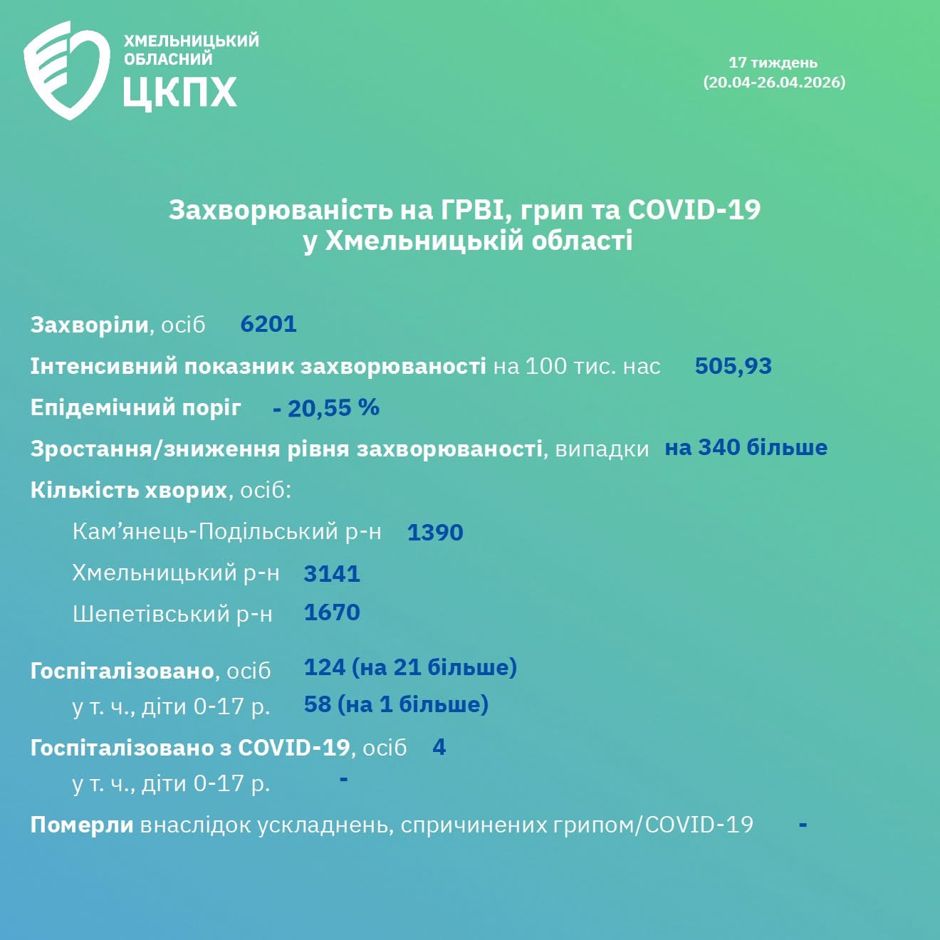 Найбільше хворих зафіксували у Хмельницькому районі — 3141 випадок. У Шепетівському районі — 1670, у Кам’янець-Подільському — 1390.