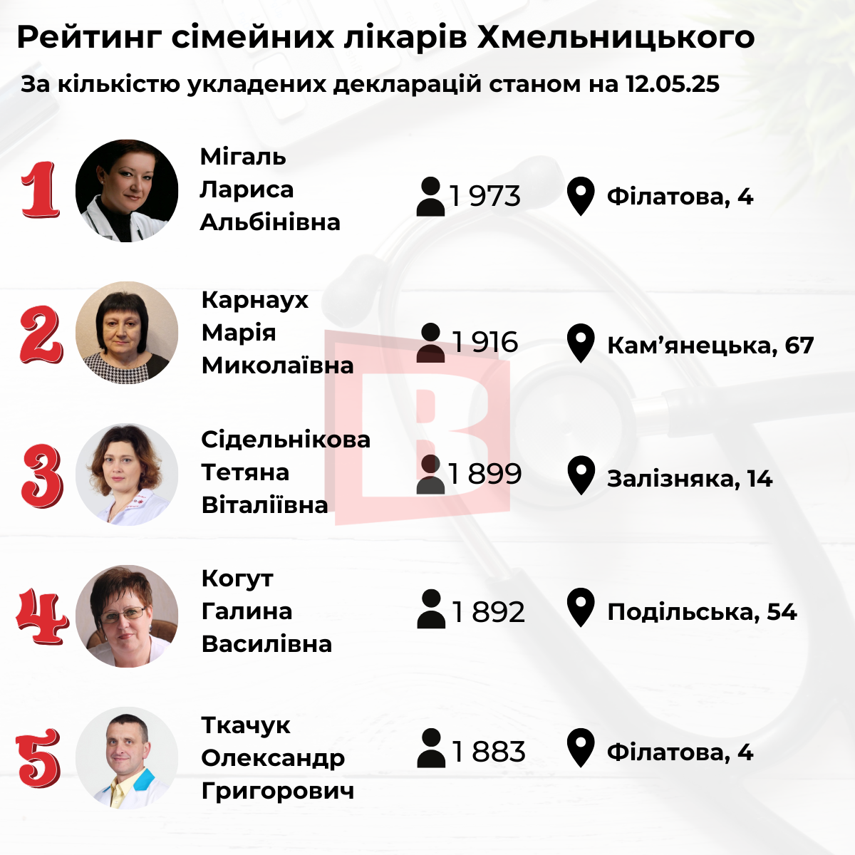 Найпопулярніші сімейні лікарі Хмельницького: рейтинг 2025 (ІНФОГРАФІКА)