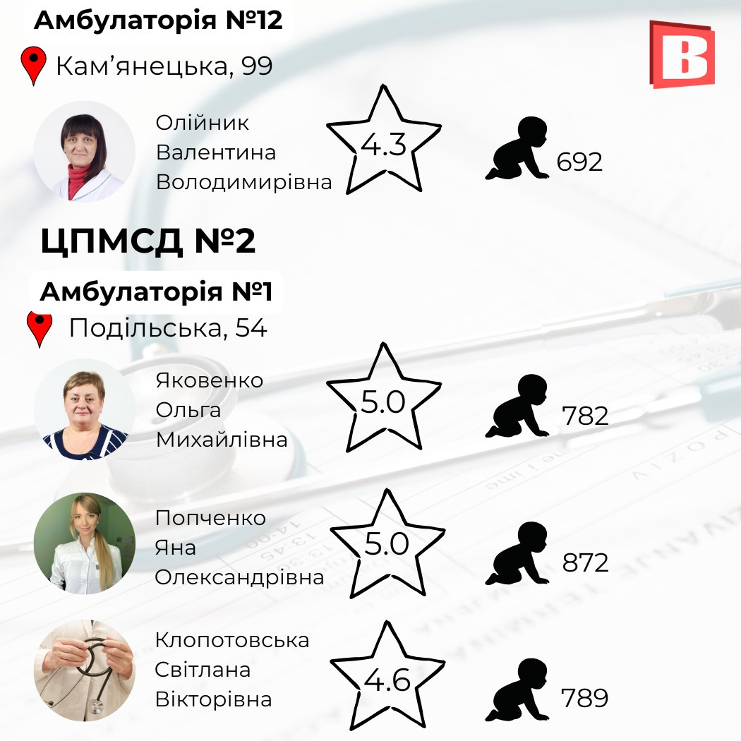 Станом на 16 лютого 2026-го, із педіатрами Хмельницького укладено понад 37 тисяч декларацій. Пацієнтів обслуговують 52 лікарі, які приймають в амбулаторіях. Ті, своєю чергою, підпорядковуються центру первинної медико-санітарної допомоги №1 та №2 Хмельницької міської ради.