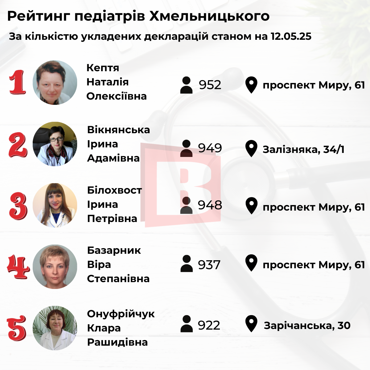 Рейтинг педіатрів Хмельницького 2025: у кого найбільше пацієнтів