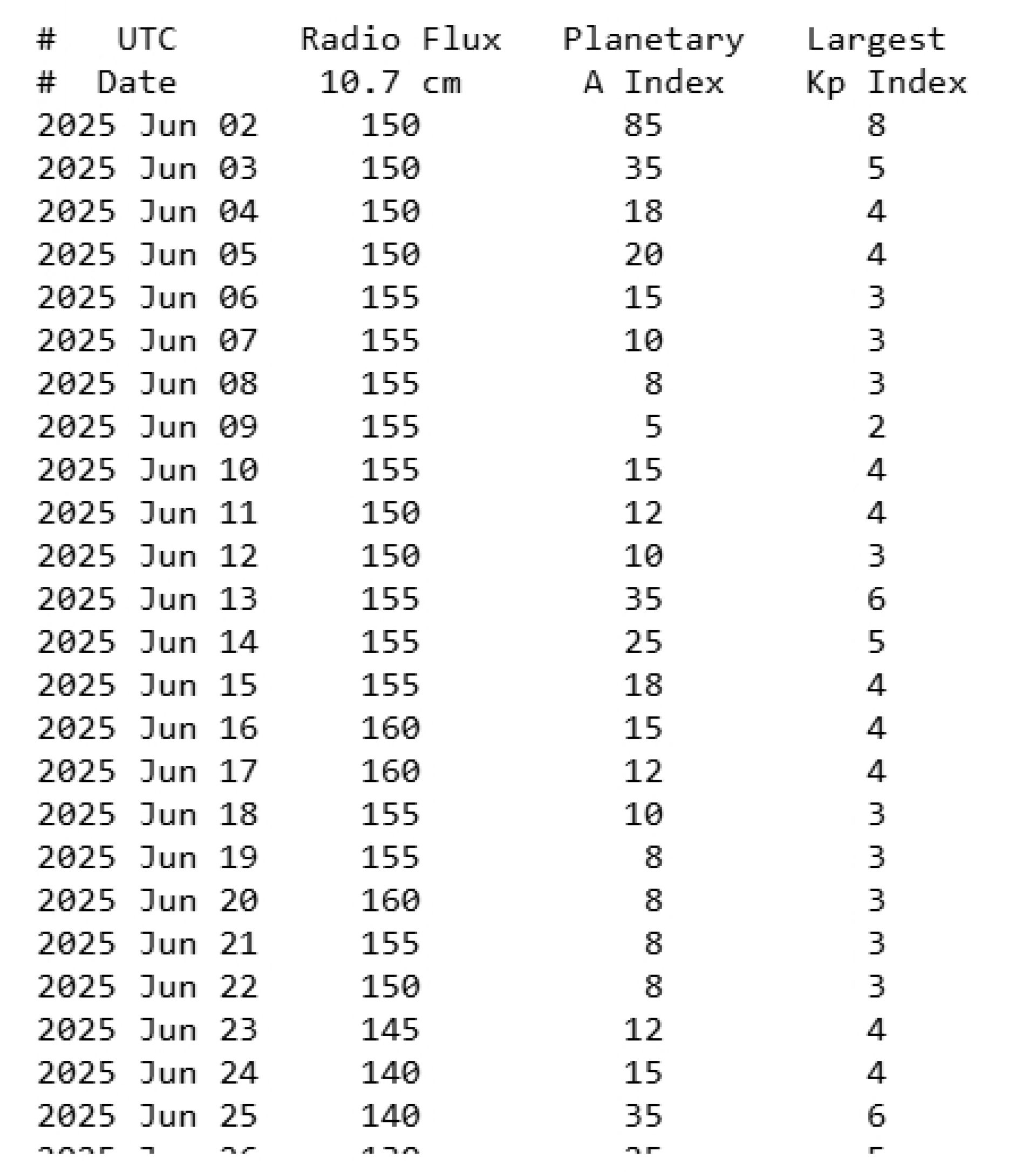 Усі інші дні червня демонструють меншу геомагнітну активність — на рівні 2-3 балів.