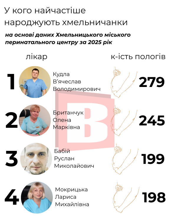 Так, ми дізналися, хто з лікарів найчастіше приймав пологи. Підготували інфографіку із іменами та кількістю пологів у 2025-му. Детальніше – переглядайте далі.