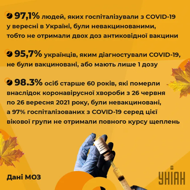 97% госпіталізованих із COVID-19 минулого місяця - невакциновані.
