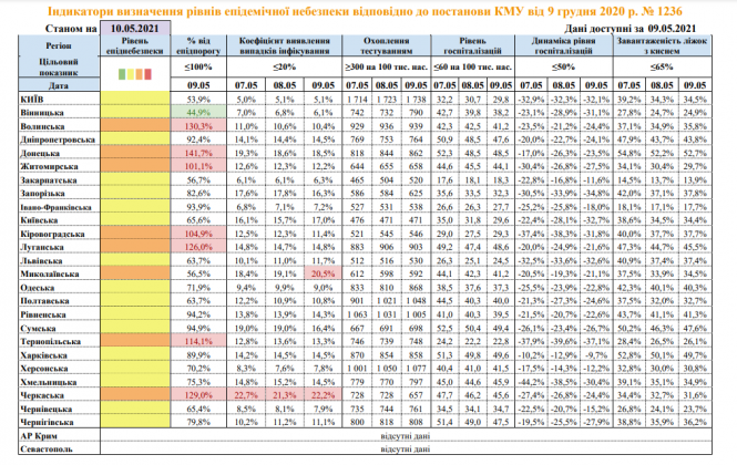 Станом на 10 травня у жодній області України не встановлено "червоний" або "зелений" рівні епідемічної небезпеки. Про це свідчать дані, опублікована на сайті МОЗ.