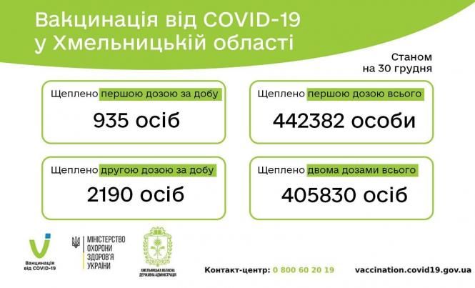 Як зазначають у пресслужбі Хмельницької ОДА, загалом від початку вакцинальної кампанії медики зробили 848 252 щеплення.