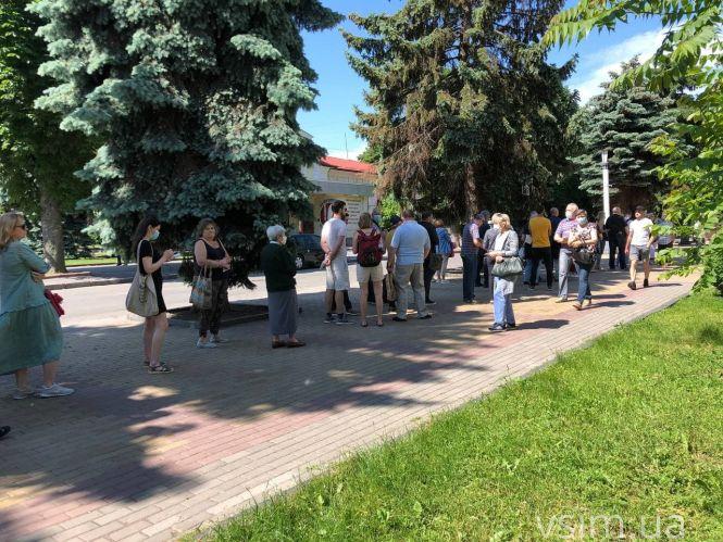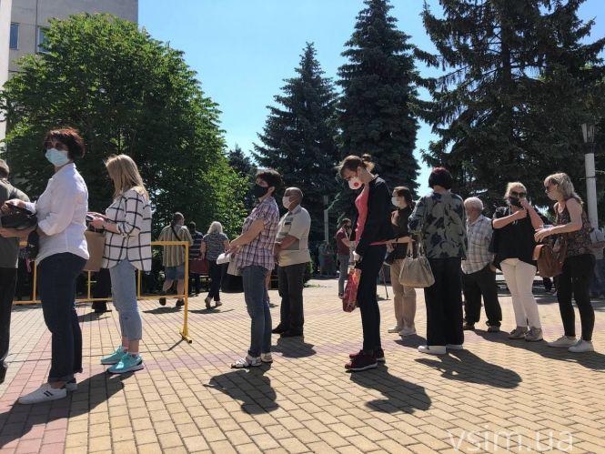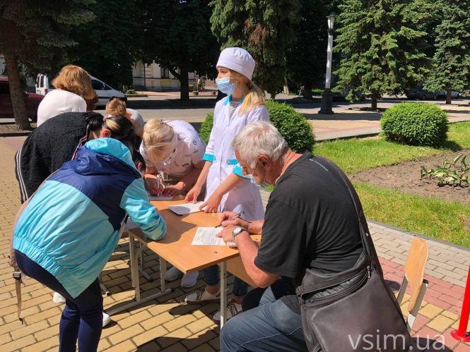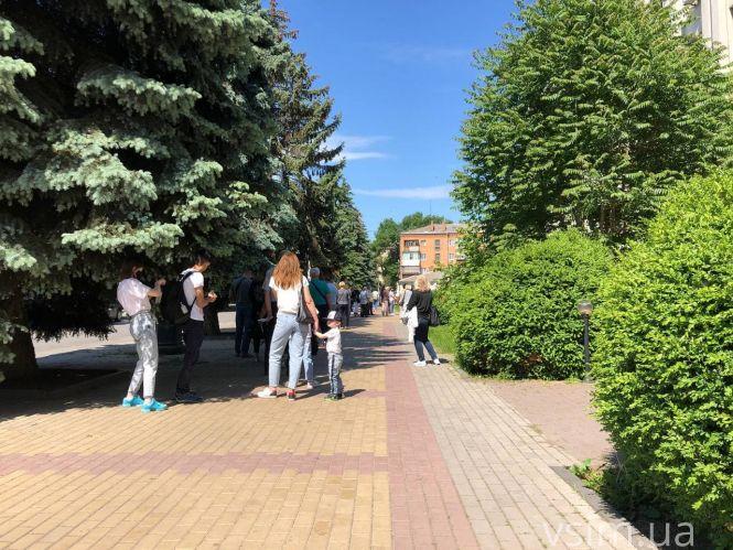В центрі вакцинації та біля нього вже зібралися сотні людей.