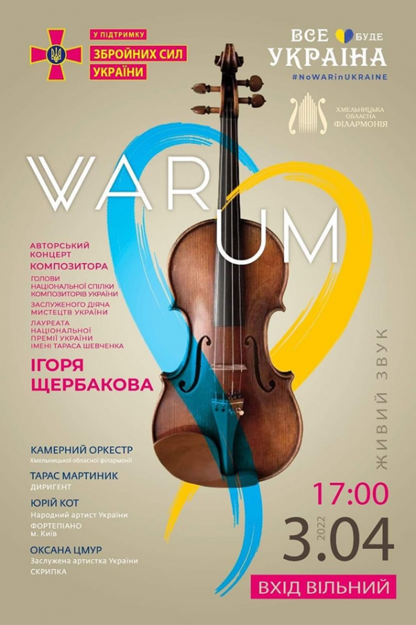 В неділю 3 квітня о 17 годині у Хмельницькій обласній філармонії відбудеться благодійний авторський концерт композитора з симфонічним оркестром.