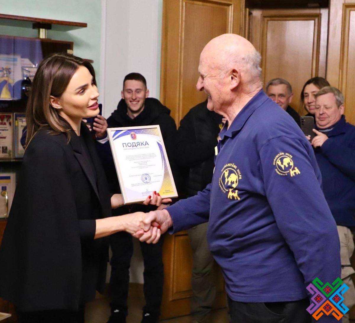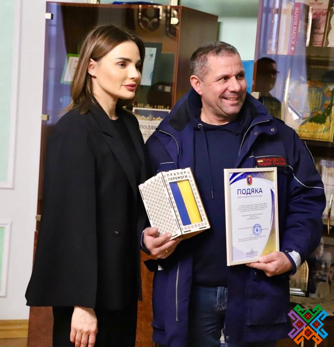 У відповідь Віолета Олександрівна подякувала іноземним партнерам за їхню допомогу та відзначила колективи благодійних фондів Подяками обласної ради. Як символ вдячності вона вручила їм український “прапор Перемоги”.