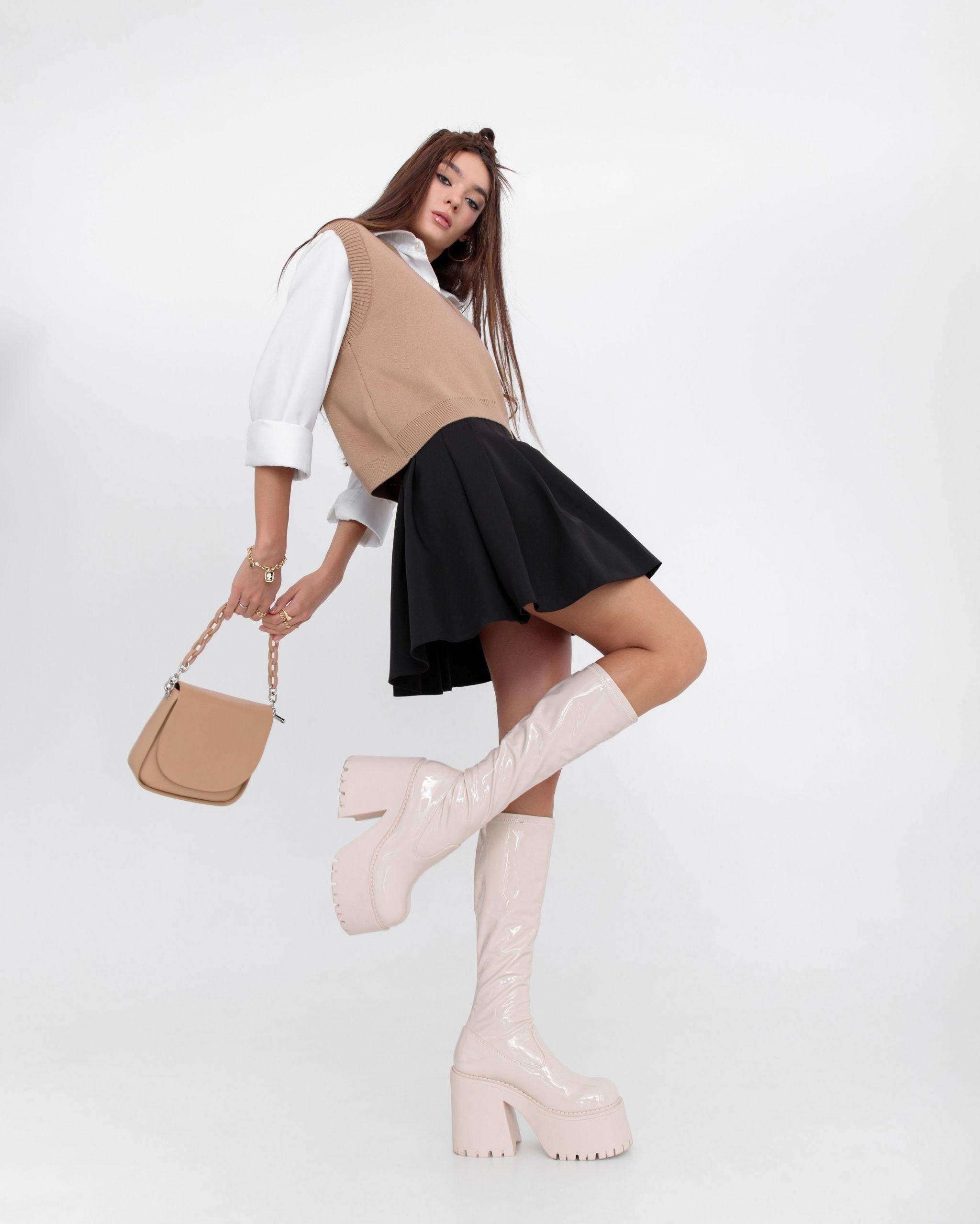 Ця характеристика є відсиланням не тільки до платформи, яка, як і раніше, є масовим трендом, але і до висоти багатьох підборів. Такі силуети можуть бути присутні навіть у витончених моделях, але з більш громіздкою естетикою. Товстий каблук забезпечить необхідну підтримку та стійкість навіть на зимових слизьких дорогах. Модні чоботи на підборах можна підібрати тут.