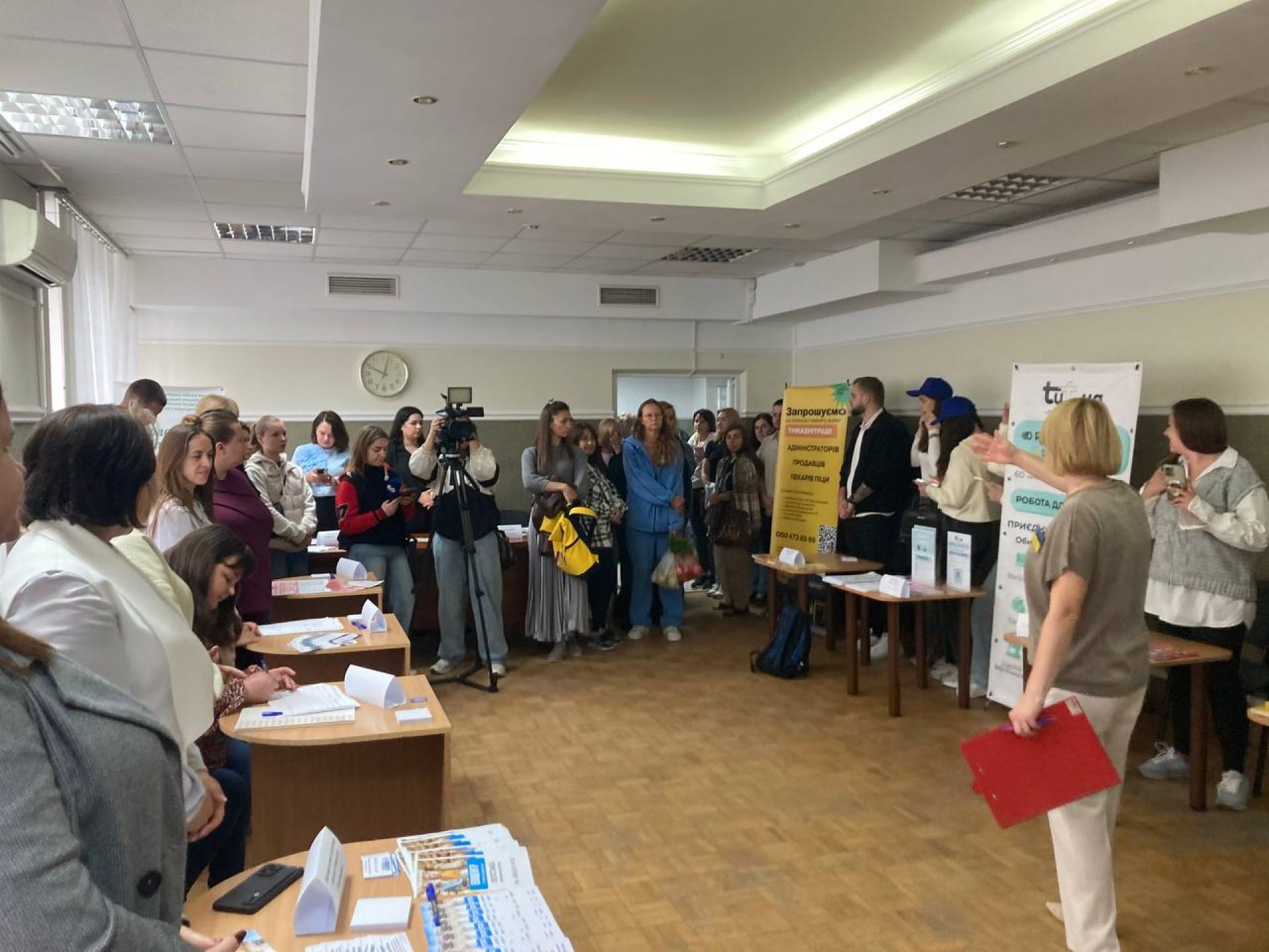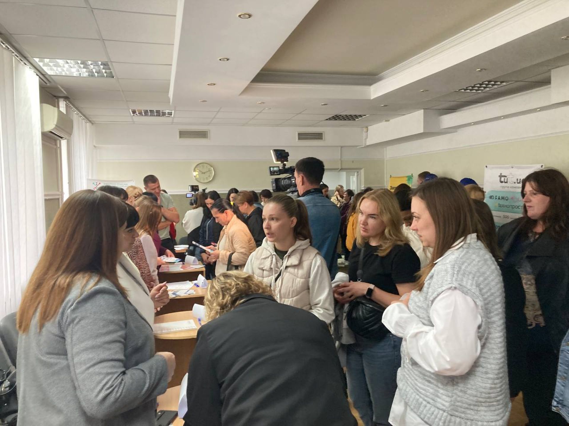 У Хмельницькій філії Хмельницького обласного центру зайнятості провели ярмарок вакансій для внутрішньо переміщених жінок і місцевих мешканок Хмельниччини, зокрема тих, хто має неповнолітніх дітей. Мета події – надання всебічної підтримки та практичних порад з працевлаштування в межах області.