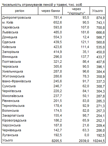Зазначається, що в банках пенсії отримують 8,2 мільйона осіб. Інші 2 мільйона пенсіонерів – через «Укрпошту».