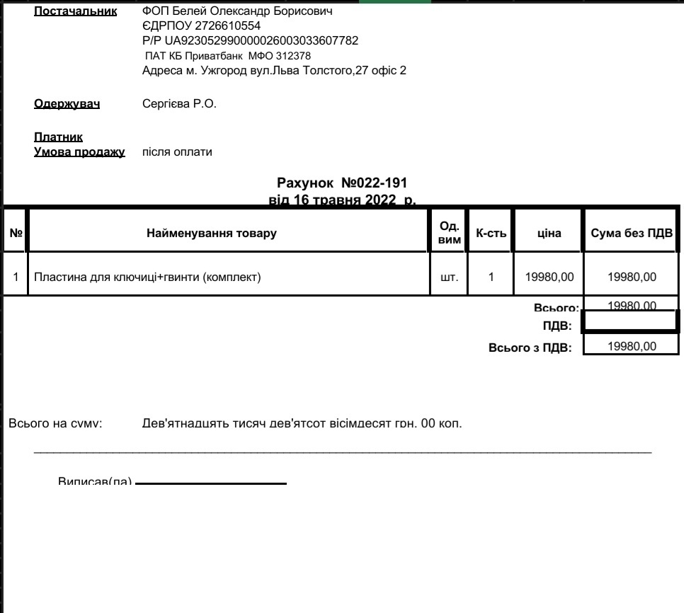 Із медзакладу в Дунаївцях пацієнток вже перевели у Хмельницьку обласну лікарню. Саме тут їх будуть оперувати. Щоправда, для цього необхідно придбати пластини для ключиці. Усього таких потрібно 5. Сергій розповідає, що медики вже виставили рахунок. Вартість однієї пластини - близько 20 тисяч гривень.