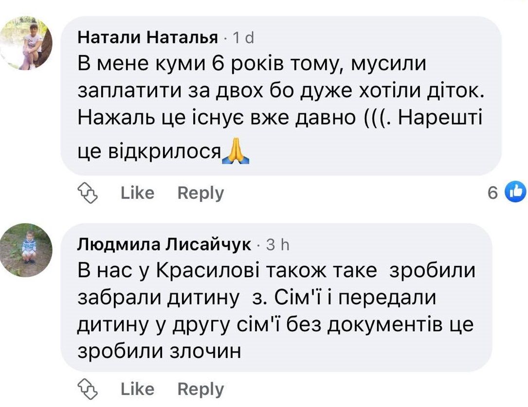 У коментарях під новиною про хабар, хмельничани стали залишати свої думки щодо ситуації. Писали, що цій схемі вже багато років. Також люди ділилися своїм досвідом усиновлення. Однак з хмельничанок розповіла, що 6 років тому її куми були усиновлювачами. Вони хотіли подарувати сім’ю двом дітям. Жінка написала, що їм довелося за це заплатити.