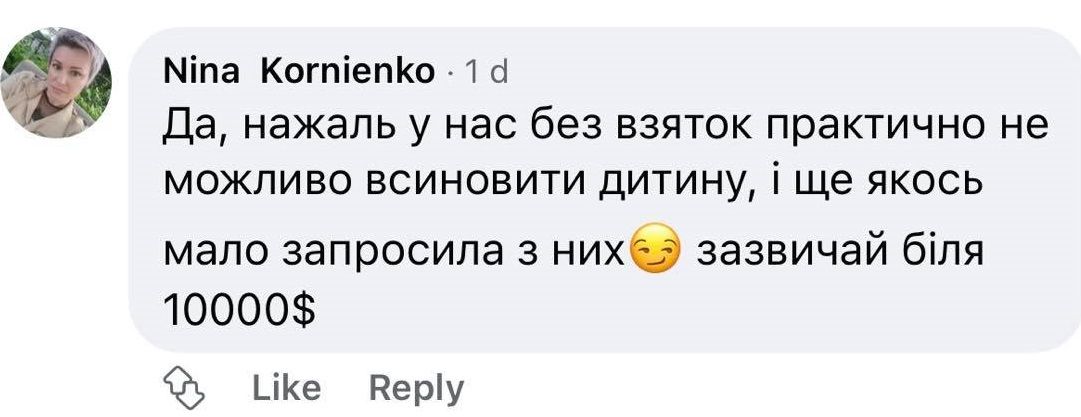 Ще одна жінка написала наступне: “На жаль, у нас без хабарів практично не можливо всиновити дитину. Зазвичай це коштує біля 10 000$”.