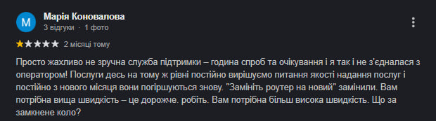 — Схожа історія була у мого сусіда. Він протягом року намагався відмовитися від їхніх послуг: погоджувався на ті акційні тарифи, які йому пропонували, але через кілька місяців знову поверталися старі й навіть підвищували ціни. Цього року йому вдалося відмовитися від послуг «Волі», перейшов до іншого провайдера і тепер проблем з інтернетом немає.