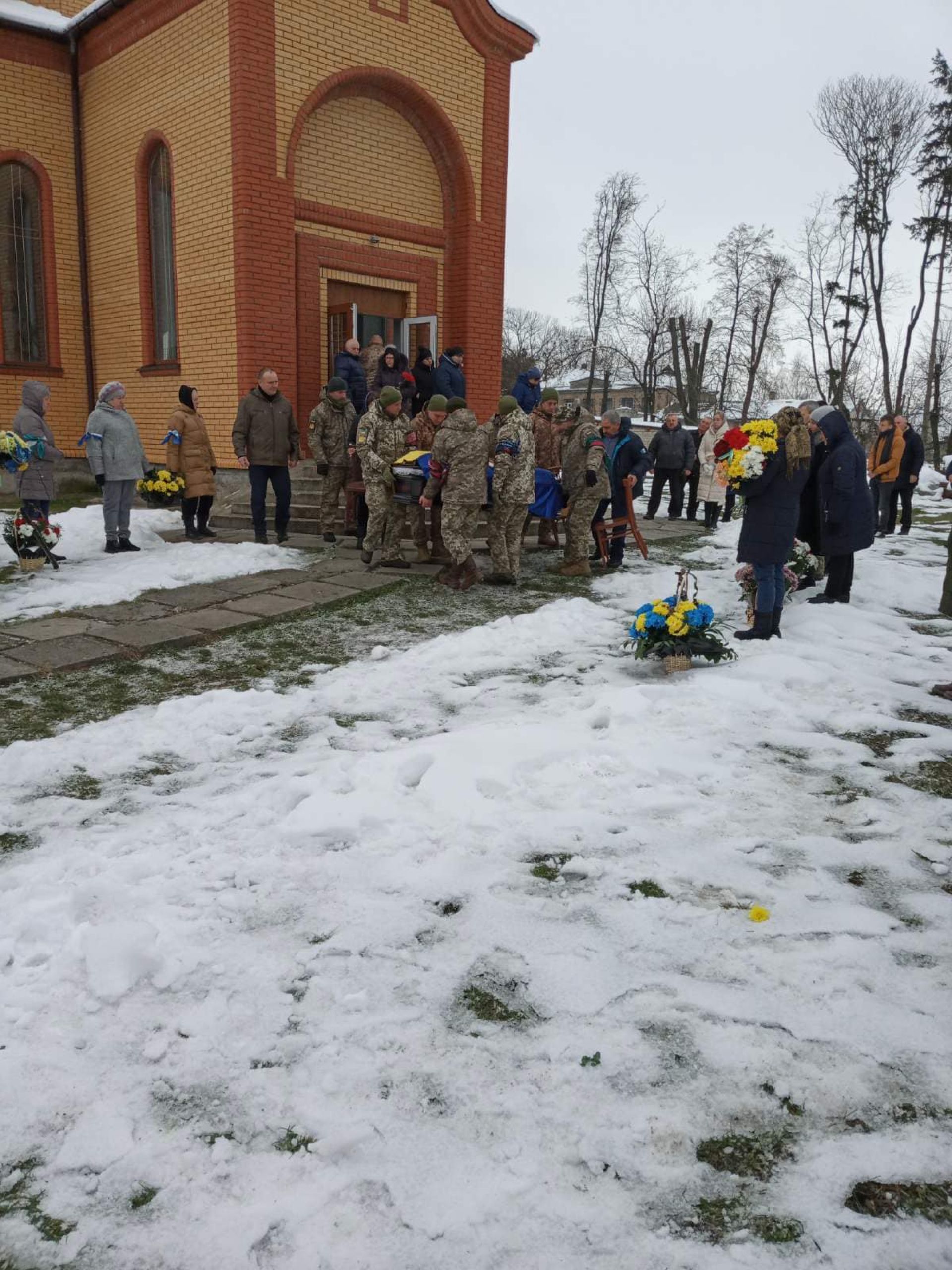 У п’ятницю, 2 грудня, місцеві мешканці віддали останню шану своєму захисникові. Віддаючи шану та славу, небайдужі грицівчани навколішки, з синьо-жовтими прапорами та квітами проводжали в останню дорогу свого Героя.