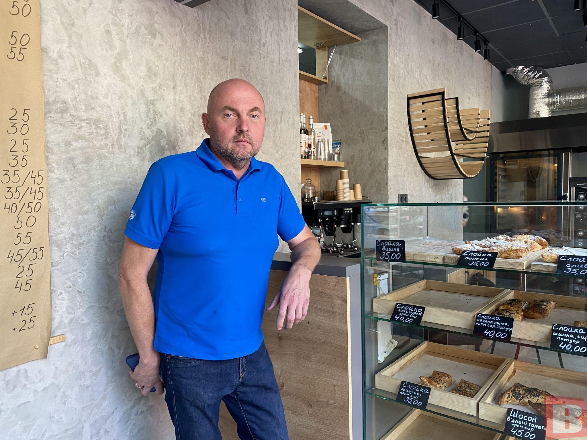 — Пекарня вже працює близько двох місяців. Щодня о шостій ранку ми виїжджаємо з дому. Приїжджаємо в пекарню і я беруся підмітати вулицю біля закладу. Тоді ми прибираємо. Дружина з дітьми починають займатися приготуванням. Близько сьомої ранку вони дають мені заявку, які продукти треба придбати. Я все закупляю на ринку. Все завжди свіженьке. Дружина відповідає повністю за начинку, вигадує рецепти. Їй допомагає на кухні невістка. Дочка в нас — бариста. Сини займаються розвантаженням товарів. Я — управляючими функціями.
