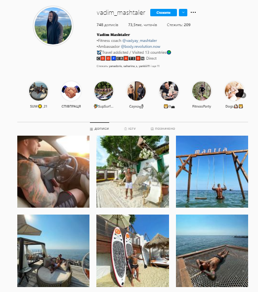 Блог цього чоловіка точно здатен привернути увагу не однієї жінки. Фітнес-тренер Вадим Машталер своїми кубиками на торсі спонукає “залайкати” його сторінку.