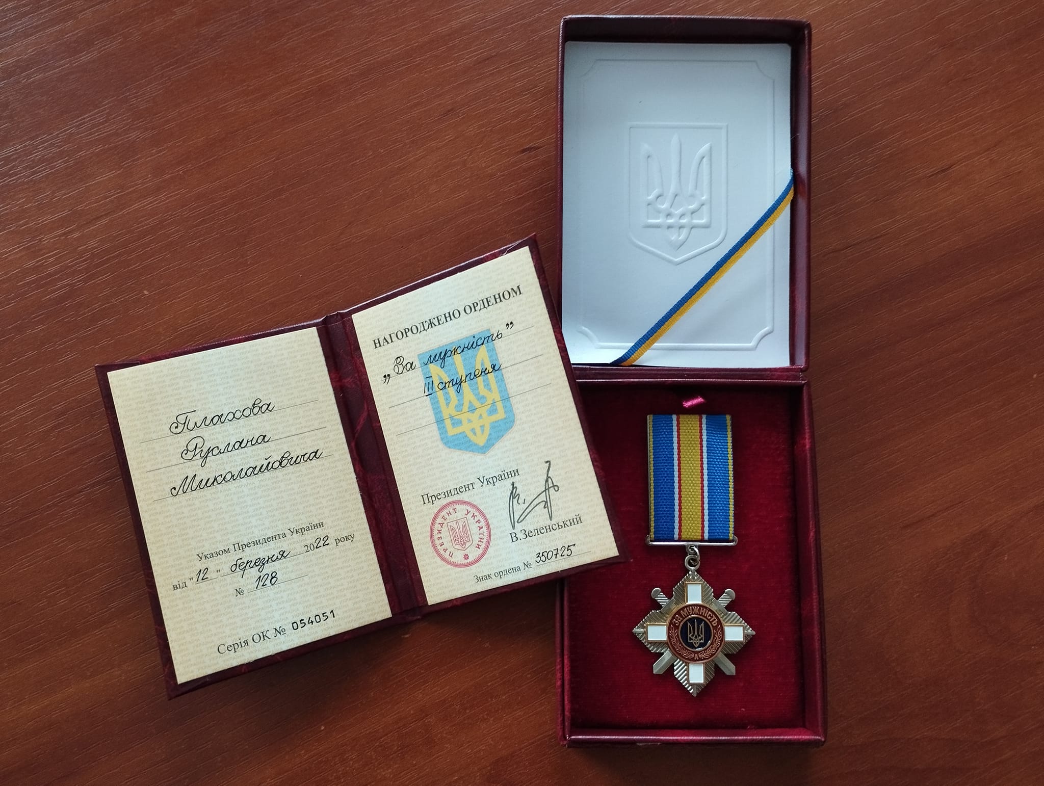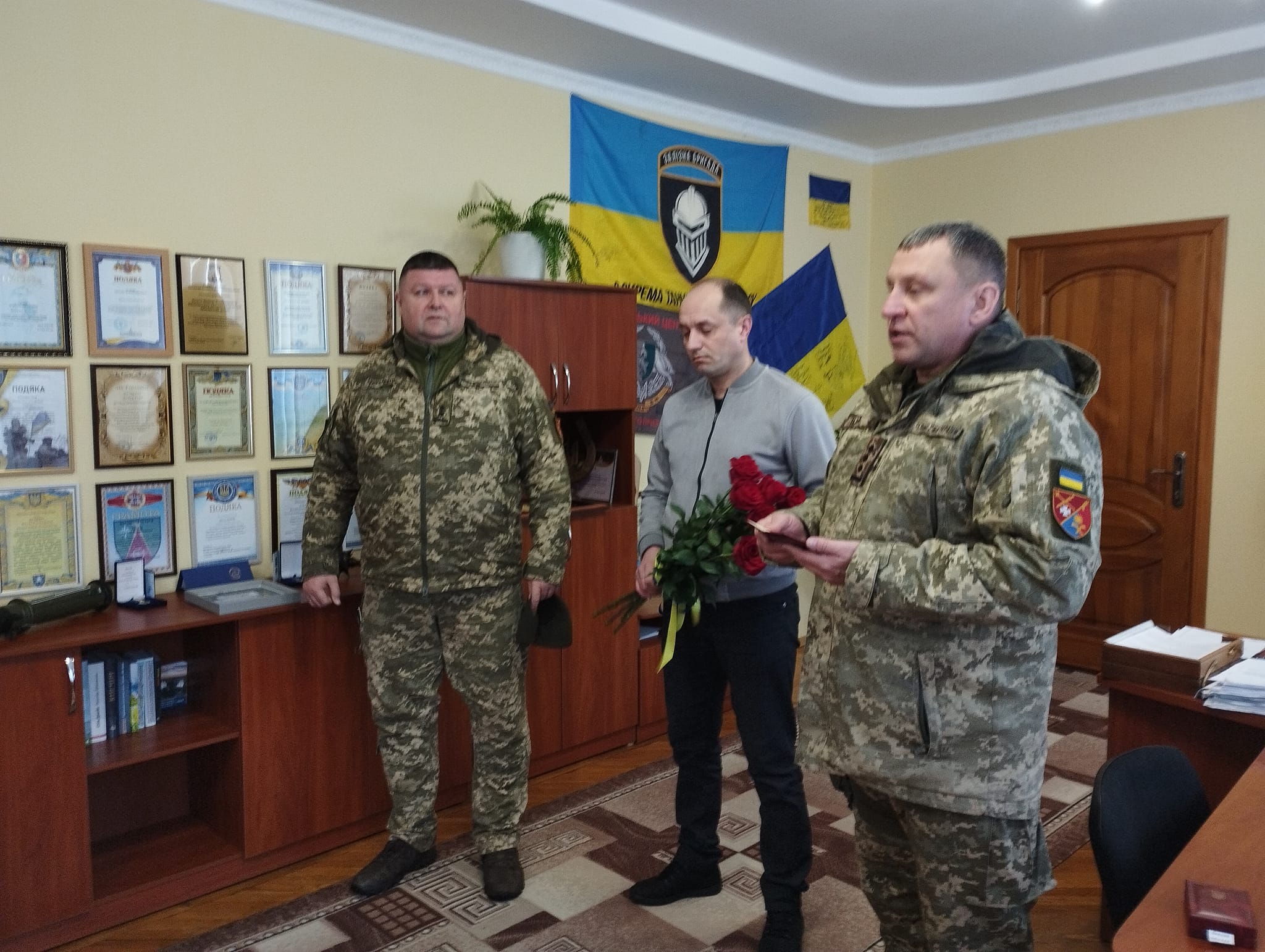 — Маша Плахова з гордістю носить кулон із шевроном 80-ї окремої десантно-штурмової бригади, де служив її батько Руслан Плахов, і у складі якої виконав свій останній обов'язок перед Україною. Сьогодні Маша, з мамою Оксаною, отримали нагороду батька — орден "За мужність" ІІІ ступеня. Мав честь передати його сім'ї разом із Сергієм Царуком, Віталієм Гарбарцем та Віталієм Янушевським, — зазначив Віталій Бузиль.