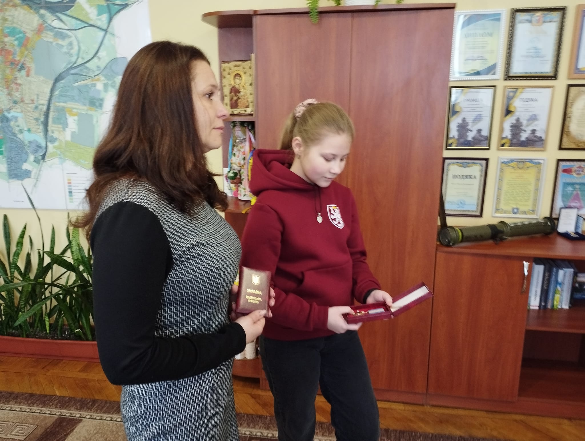 Нагороду вручили доньці Героя — Марії, яка прийшла разом із матір’ю Оксаною.