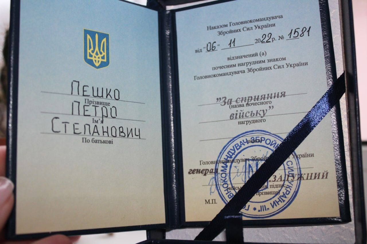 Петру Пешку вручили нагрудний знак “За сприяння війську”.