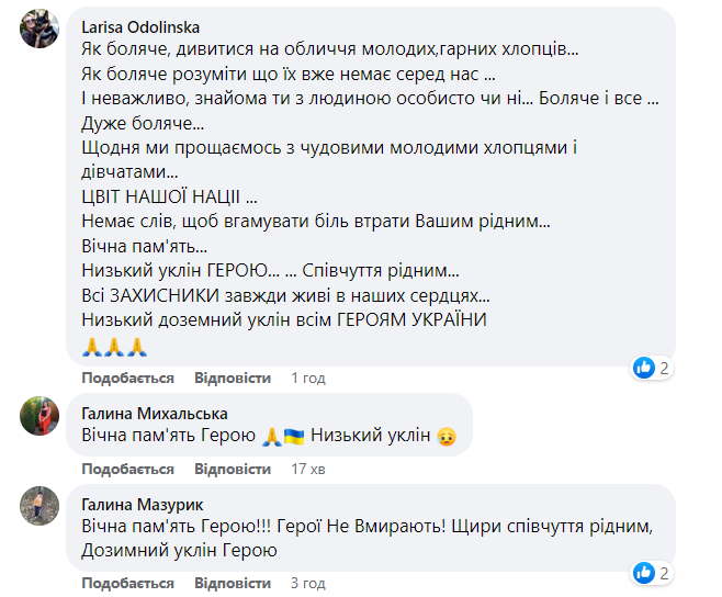 Під постом люди висловлюють співчуття знайомим та близьким загиблого Героя.