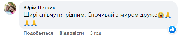 Друзі та знайомі сумують з приводу втрати: