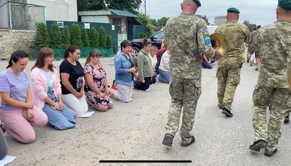 Мешканці громади на колінах зустріли похоронний кортеж з тілом свого захисника.