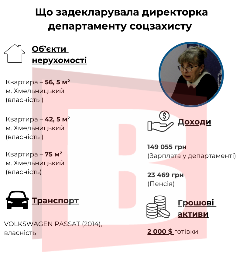 У січні цього року вже колишня директорка департаменту придбала автомобіль VOLKSWAGEN PASSAT 2014 року. У декларації вказала вартість – 141 578 гривень.